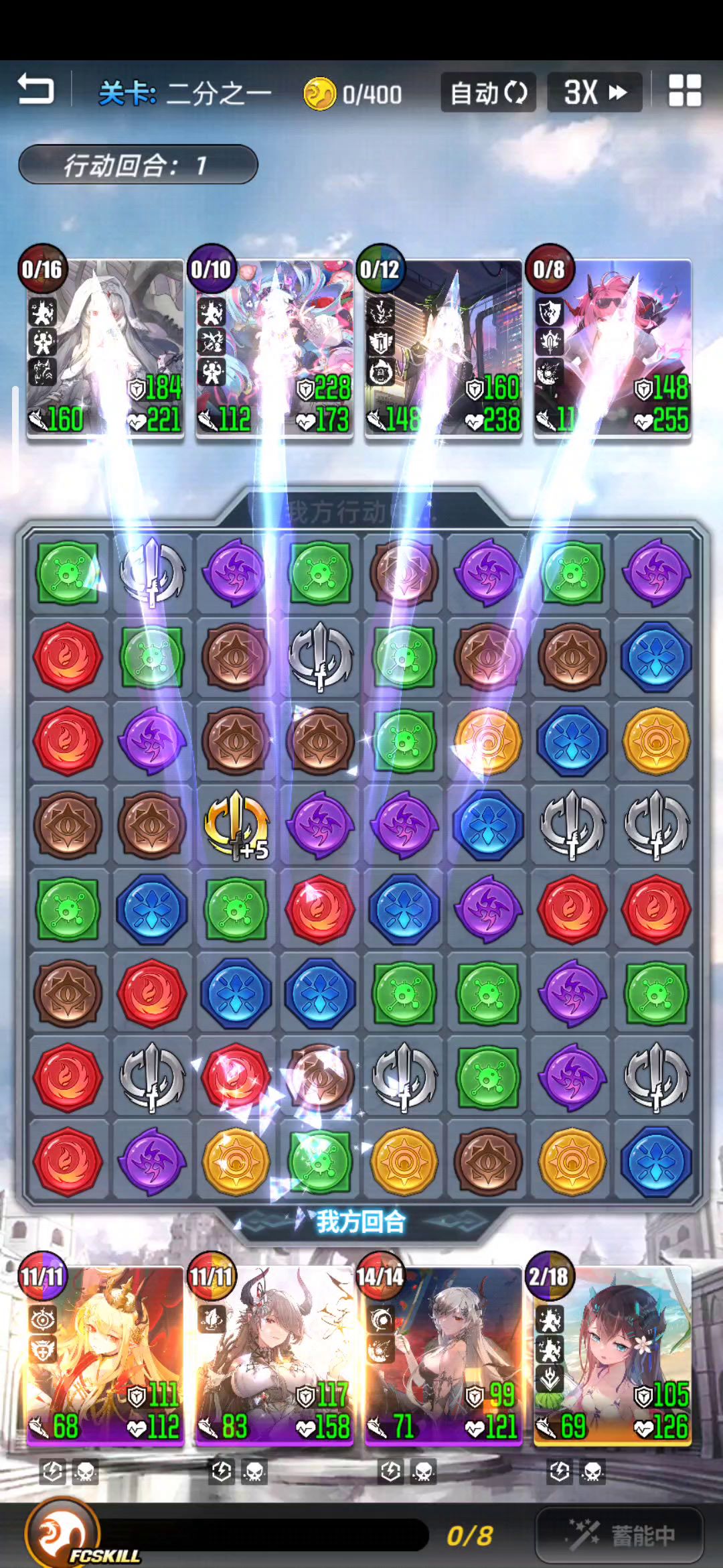 所有关卡基本血腥两次技能解决战斗 不选攻击,控场优先选充能,生存优先选攻击减伤, 第三层有50减伤配合子夜直接免疫攻击宝石,容错率拉满 技能顺序3124,优先4消