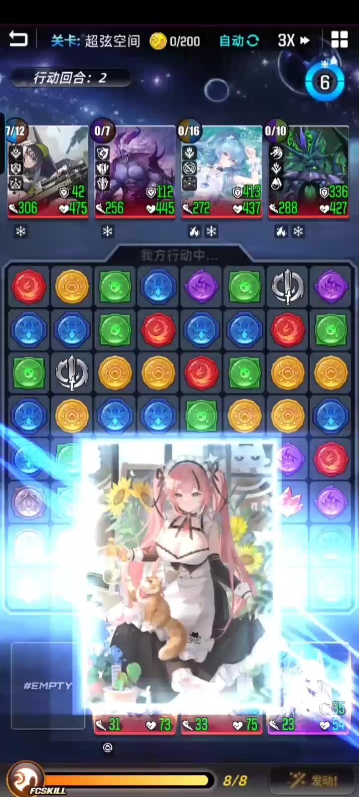 本周的超弦属性冰&火,对于600分的萌新和想开摆的大佬们超级的友好的咯~ („ಡωಡ„)因为:芙神队可以上咯~ ❶礼包购买建议:依旧是2包就够咯,当然5包是更好的啦~各位萌新以及大佬们根据自身财力酌情购买哦~ 低层配队(主要还是以芙神队为主哦): (1层~30层) 技能释放顺序:2-1-3-4 优先技能or四消:优先四消 自动or手动:自动 1号位:抽卡 2号位:抽卡 3号位:抽卡 4号位:抽卡 技