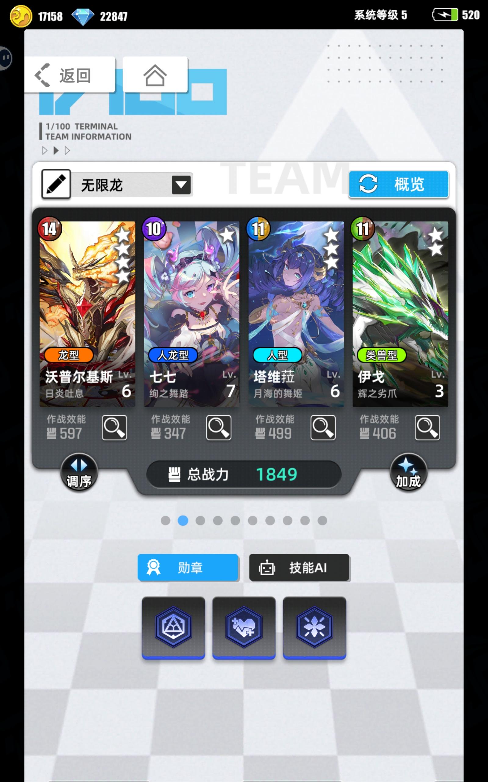 3号位的厄潮汐和4号位的初始+6能量的天赋要点,虽然高达不算人形,但是能给1号位重能,也就相当于给高达充了,其他随意