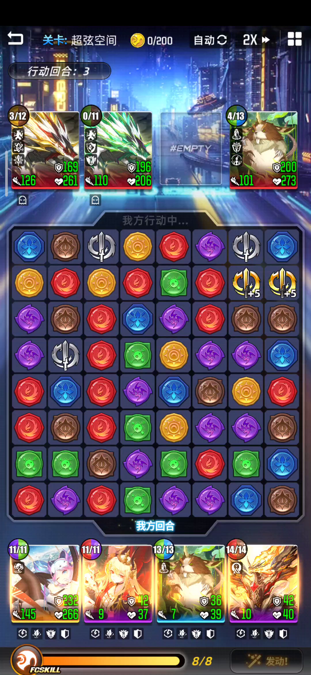 这个是我打70多层一次录的视频,今天已经过百层。 只能说签到龙超弦绝对的t0,有能力上签到龙一定要上。 打发思路简单说就是四消>签到龙(6颗左右攻击)>鼠鼠>吞灭>恐惧。 大家按照这个思路打基本对面护盾都破不了