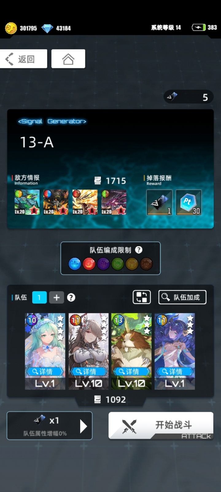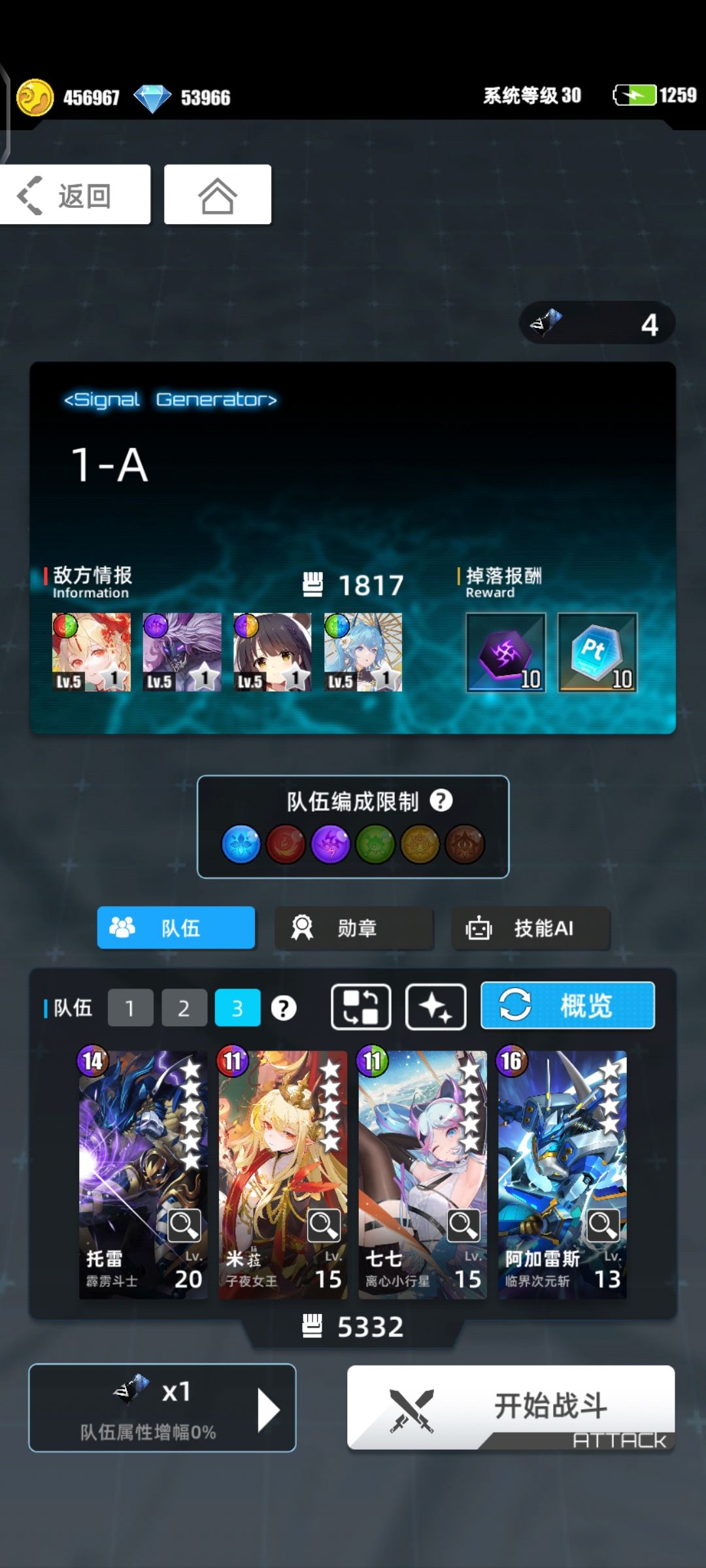 刚更新的雷限制月活动,粗浅的阵容搭配尝试 1队 推荐 这个一号位的等级和技能开一下,还有金格的开局爆破或者也可以用伊欧的开局加能量也行,加上开局雷潮汐,可以较为稳定的循环了 试用后感觉,稳定性挺高的。 2队 也可以试试用这个主角武器,试用了9把没翻车。#攻略