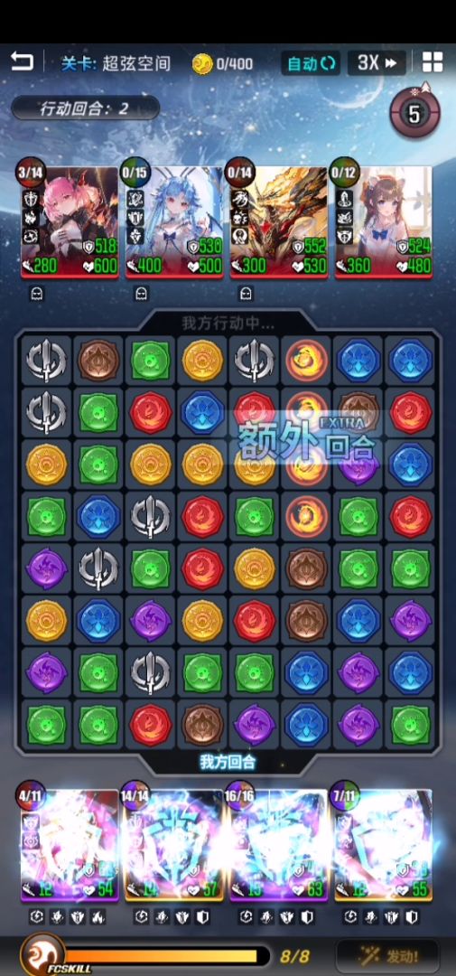 下周的超弦属性为“雷&火”~ 各位有“猩红芙芙”的萌新以及大佬们,这周又可以愉快的600开摆了~ 对于想要冲榜的大佬们,钻石礼包只管冲!猩红芙芙带你冲榜无忧! ♥礼包购买建议:依旧是2包就够咯,当然5包是更好的啦~各位萌新以及大佬们根据自身财力酌情购买哦~ 超低层配队(纯萌新队)~[1层--5层] 技能释放顺序:1-2-3-4 优先技能or四消:四消 手动or自动:自动 1号位,3号位,4号位卡免