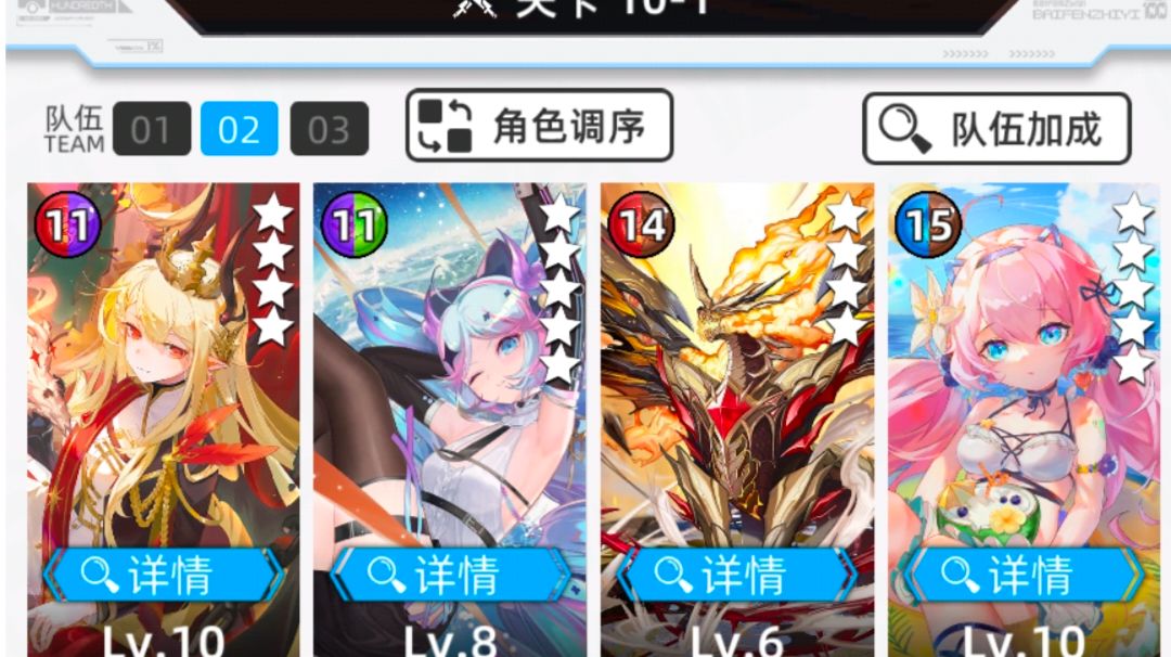有条件的还是有用基地锻造的带吞灭的角色代替米拉,提升明显。锻造缺材料加一个好一点的公会,多捐赠有材料。 ———————————————————— 补充一下超弦点数的问题,21A的时候超弦点数一次40,怪一只血+盾80左右,攻击二十几,这套阵容打四厄系那种的小怪可以单指令,但都偶尔会翻车。后面刷到三免疫恐惧重置了,重置从1A最简单的怪开始打,超弦点数不重置。 ——————————————————— 超