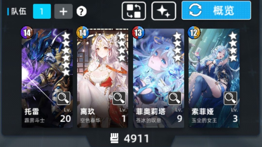 个人感觉可能是目前最亲民同时上限高不拉夸的一套。 阵容如图一。 更新:13每人都有,子夜本期up,唯独魅惑不是每人都有,推荐可以换成流光米拉或者两星白希,但是我也没机会去高层试了。。。 礼包我买了五层,最后打完100层还剩几张票。 天赋情况:我肯定是给一些推荐,🈶天赋容错更高。没天赋也问题不大。 1号冰吞开了天赋三(提高生存,防吞 2号子夜之前开了天赋三(抗揍 3号绿狗之前开了天赋二(防吞 打法思