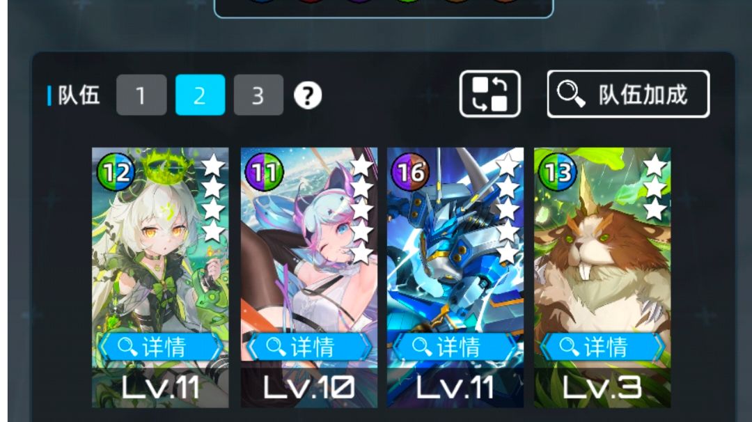 考虑到阵容的强度问题。下面只推荐两种阵容: 第一种:恐吞队,基本从开服用到现在的超弦最强阵容,久经考验,强度在线有保证。技能顺序3214四消优先。可用子夜托雷七七高达替代,技能顺序3421四消优先。 第二种:4冰阵容,这套阵容适用于所有带冰属性的超弦周,主角武器是暴食,需要升级到23级激活召唤冰潮汐天赋。技能顺序3421四消优先。