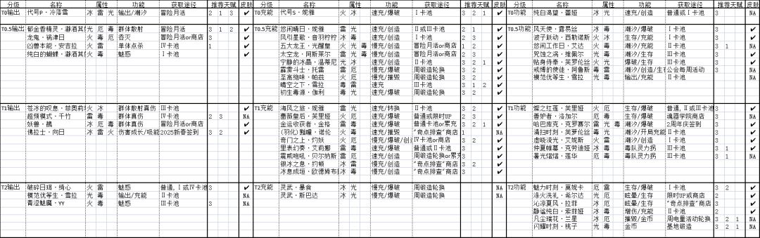 新手开荒推荐&角色简评