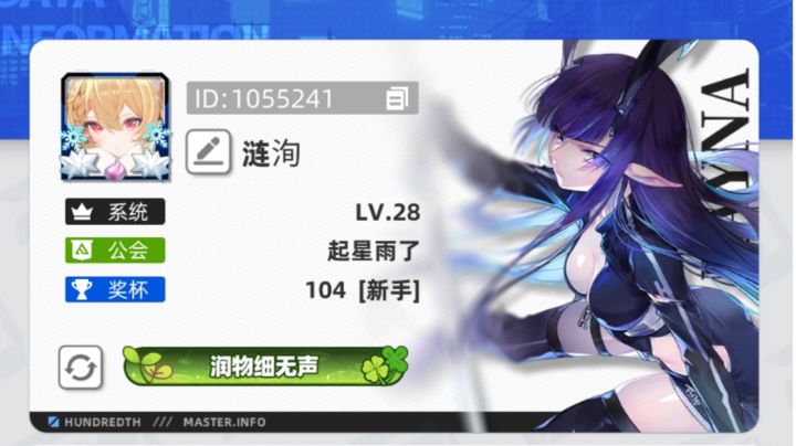 游戏名称:百分之一 游戏平台:安卓 游戏时长:半萌新玩家 适合人群:零氪党 休闲党 游戏体验: 无意之中发现了这个宝藏游戏,主要是卡面漂亮,再加上惊人的爆率,虽然作为新人啥体系都不懂,但也可以慢慢摸索,作为三消游戏,永恒不变的耐玩,nice 许愿六星卡牌:破晓天狼克劳迪娅 Tap下载 游戏名称:涟洵 帐号ID: 1055241
