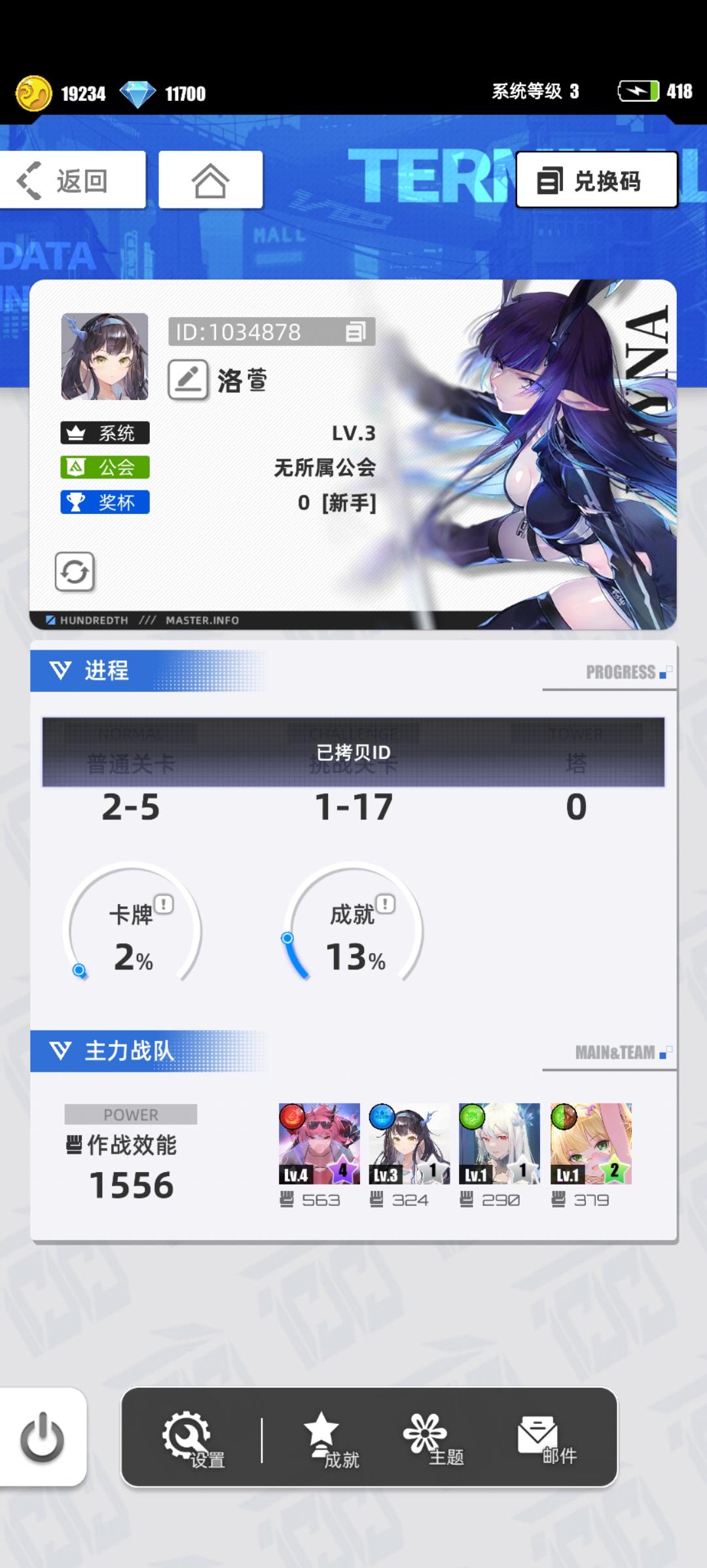 游戏名称:百分之一 游戏平台:TapTap 游戏时长:入坑2天的萌新(回坑玩家) 适合人群:竖屏摸鱼爱好者 游戏体验:之前在23年的时候玩过,听说精简了,回来看看。结果发现睡伊和菲亚还能再战,劳模了说是。 许愿六星卡牌:破晓天狼*克劳迪娅 游戏名称:卡特菲利斯帐号ID:211402