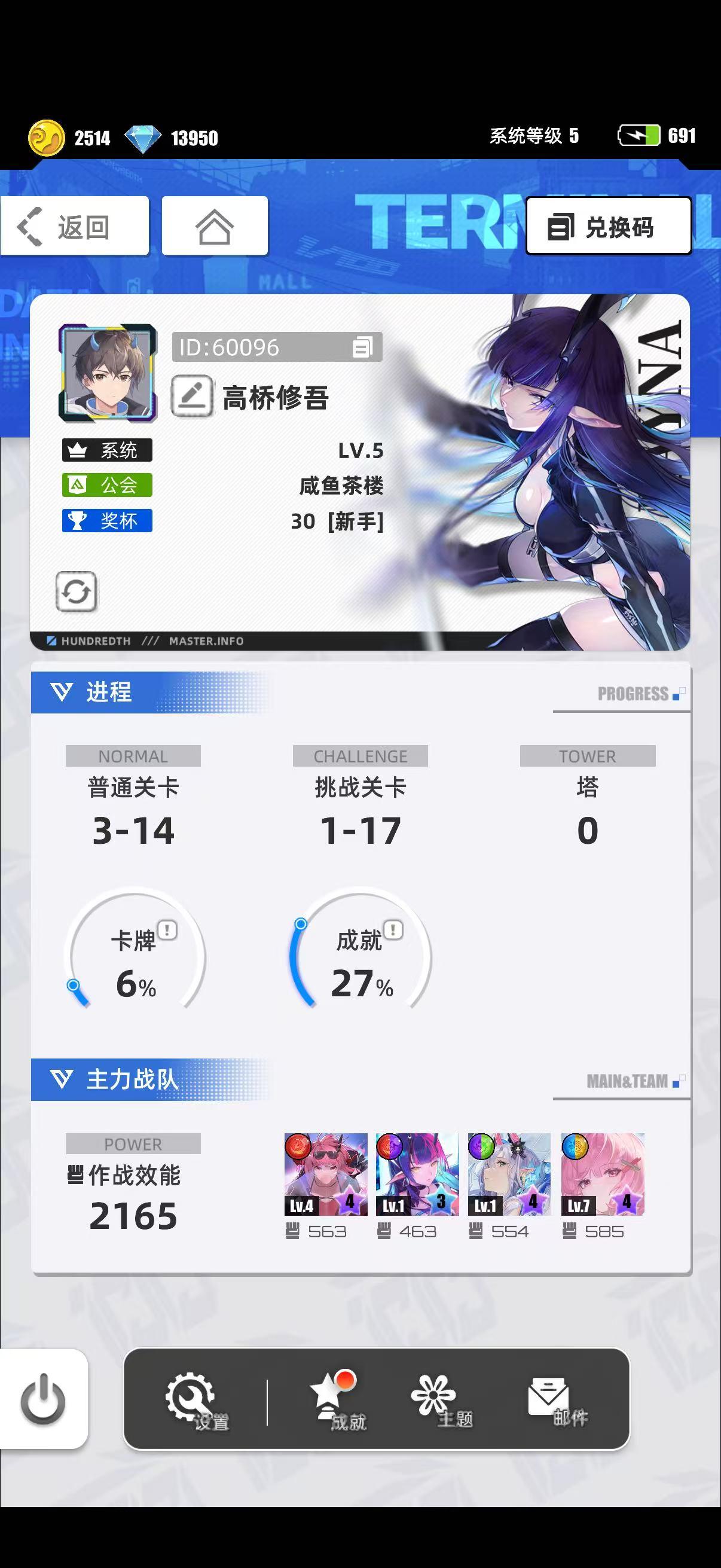 游戏名称:百分之一 游戏平台:TapTap 游戏时长:8天适合人群:上班族和卡牌玩家 游戏体验:我很喜欢这类竖屏可以上班摸鱼玩的游戏,百分之一也完全不肝,能在上班时间挂机打打日常,很舒服,希望游戏能越做越好,还有就是希望限时活动能增加自动循环,手打太累了,攒了很多活动券都要一次一次点太累了 许愿六星卡牌:代号P·冷落雪 游戏名称:白嘻嘻帐号ID:1024981