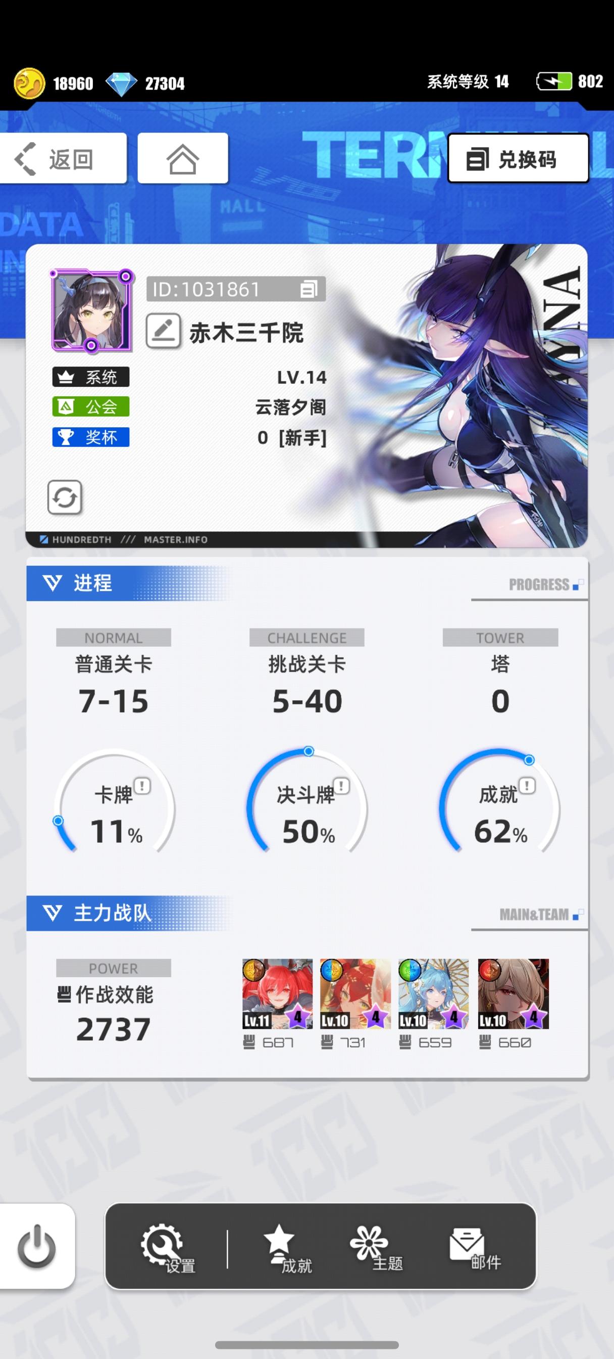 游戏名称:百分之一 游戏平台:TapTap 游戏时长: 游玩第10天 适合人群:喜欢养成的玩家 /休闲玩家游戏体验:角色卡牌做得都很精美,资源都很好获取,抽卡压力小,上手快玩法也不复杂,很适合休闲时玩一会 ,希望游戏越来越好 。许愿六星卡牌:代号P·冷落雪 游戏ID:赤木三千院帐号ID: 1031861 安卓tap服