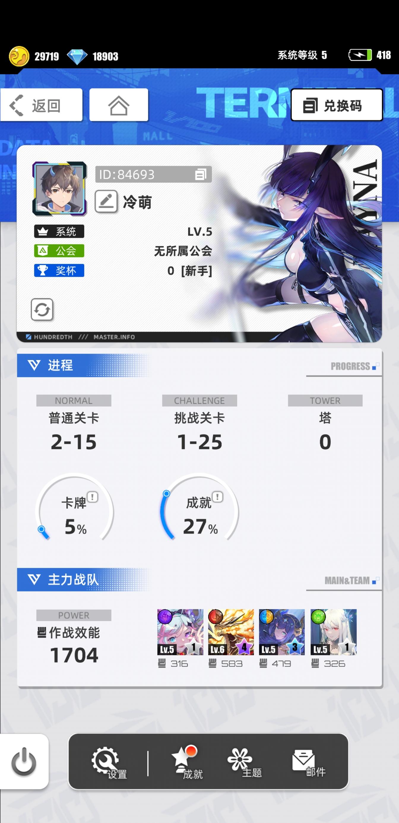 游戏名称:百分之一 发售平台:TapTap游戏时间:萌新玩家推荐人群:休闲党,养成游戏爱好者,摸鱼玩家游戏体验:竖屏设计适配碎片化游玩,操作轻松无压力,角色立绘精致美观,养成体系简单易上手,抽卡与角色强度方面的压力较小,整体游玩节奏舒缓,是很适合日常放松的休闲手游。许愿六星卡牌:代号P·冷落雪游戏昵称:冷萌账号ID: 84693