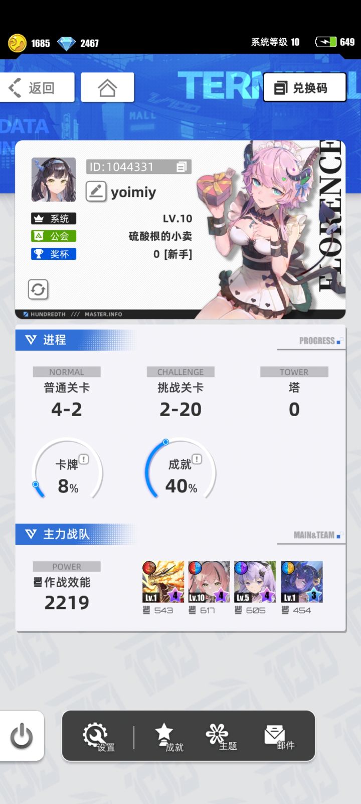 游戏时间:碎片时间玩一玩推荐人群:抽卡,养老,养成游戏体验:手机系统式主界面让我瞬间代入一一点消息像聊日常,翻卡牌库像整理收藏。三消对战时,我得算着元素消除顺序,比如先凑三组触发治疗卡,再留“共吗”反制对手,每步都像自己在掌控战局。 没空手动刷时,开AI托管也能拿奖励,碎片时间玩着毫无压力。剧情推进中,跟着主角查线索、破谜题,像亲身经历冒险。最惊喜的是抽卡后能兑实体卡,收到卡片那一刻,感觉游戏