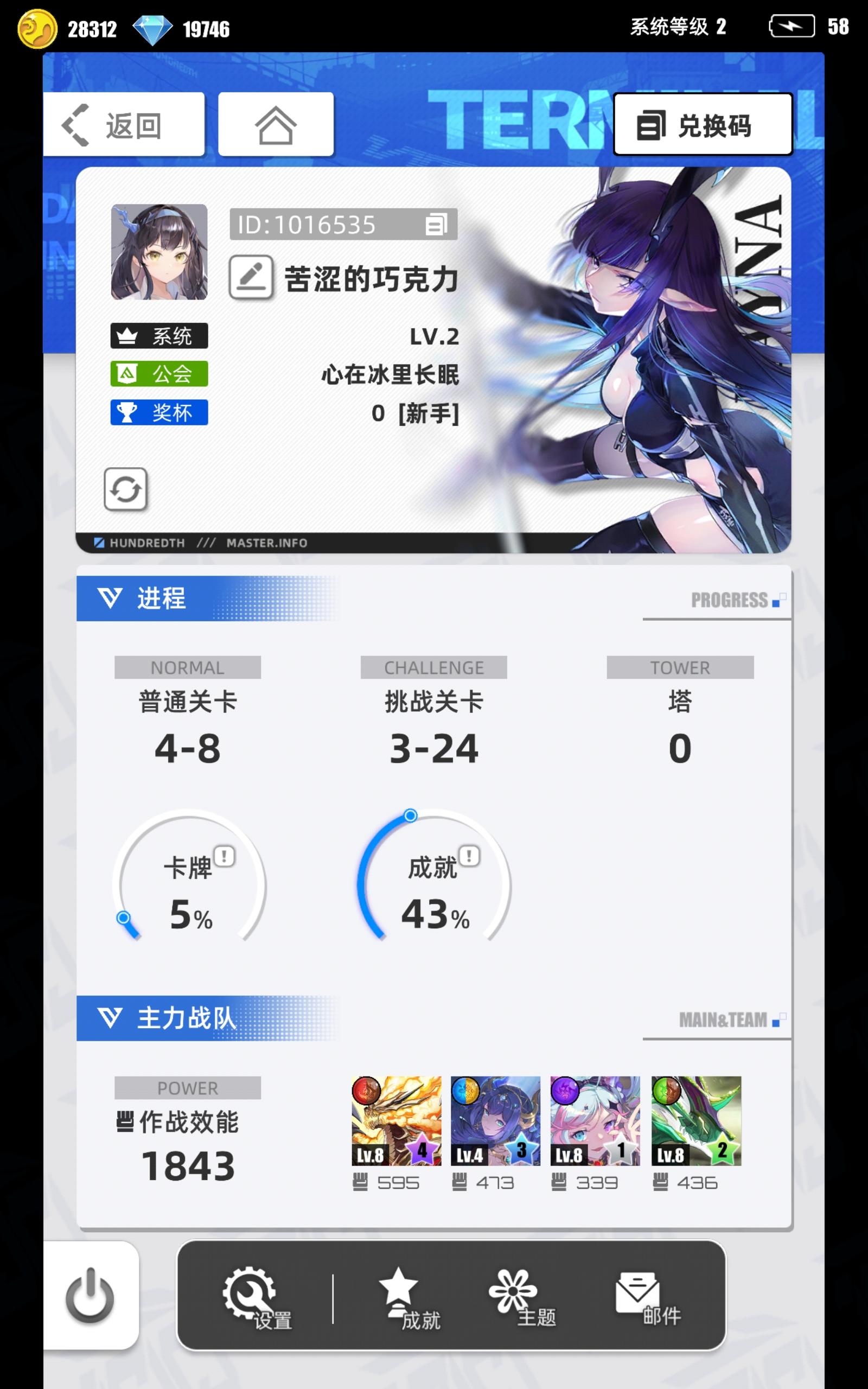游戏名称:百分之一 游戏平台:TapTap 游戏时长:刚刚入坑玩的 适合人群:休闲党,集卡党 游戏体验:玩3a玩累了,用这个游戏休闲一下,头一次玩这种类型,还可以继续探索一下 许愿卡牌:代号s*妮雅游戏昵称:红黑红红红帐号ID:1027315