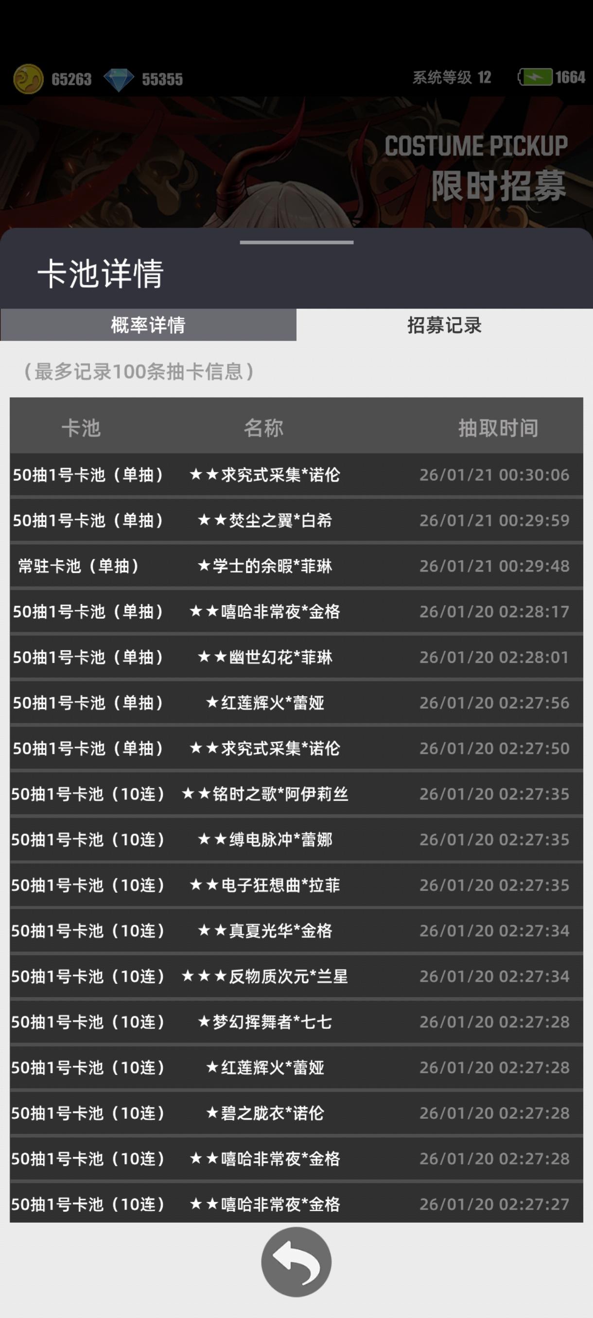 我已经快五十抽了,你们看我抽卡记录。有点黑……不是显示10%概率吗……