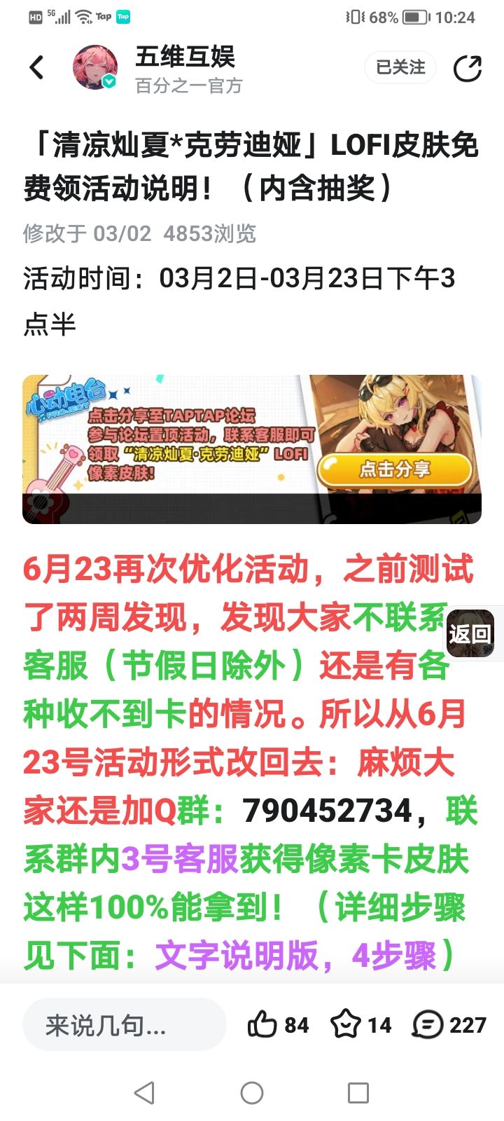 恭喜中奖,请下周一下午(工作日2点半~6点半,其他时间联系消息可能会被刷掉,请不要其他时间联系哦)加群:368141893后私聊熊猫头像管理员(或者任意官方群找管理员“盛好疯”(熊猫头像的管理)即可,因为加人多会被QQ限制,直接群内发起对话即可),附上tapID截图,以及百分之一游戏ID+需要卡牌+是安卓官服还是ios服+说明是直接下载的游戏还是tapplay启动的游戏(如果错过时间只要没兑换奖励也能联系)