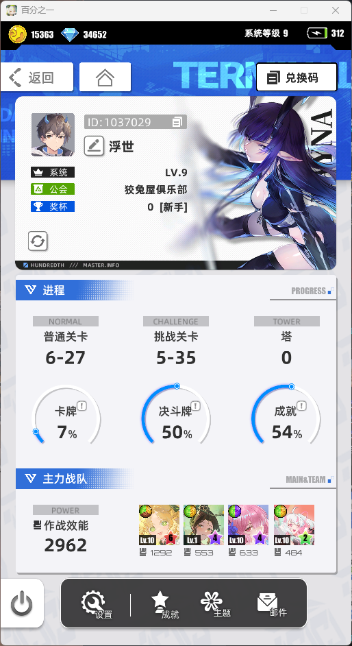 游戏名称:百分之一 游戏平台:TapTap 游戏时长:一周 适合人群:上班族和竖屏玩家 游戏体验:真的很好玩,每个月最期待的是签卡皮肤和98皮肤,因为98皮从我入坑以来大部分是门将六星卡的性转皮肤,这一方面对我来说是非常有吸引力的,充满了未知与可能许愿六星卡牌: 代号P·冷落雪游戏名称:崽帐号ID:60300