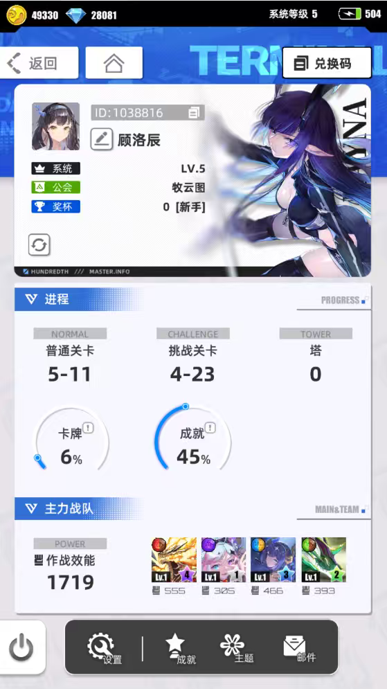 #我的百分之一 游戏名称:百分之一 发售平台:TapTap 游戏时间:回归老登 推荐人群:上班族 游戏体验:三消游戏,玩起来还可以,立绘不错,当时上学没精力继续玩然后忘了,最近又想起来了。pvp机制对玩家很友好,没有啥强度压力。 许愿六星卡牌:代号s妮娅 游戏名称:乐账号ID:197456