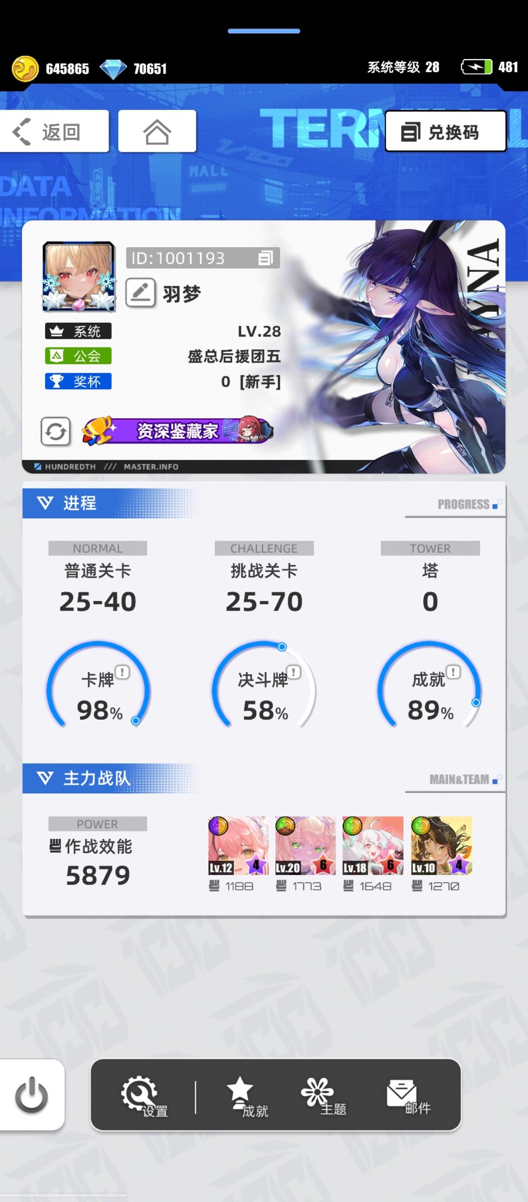 游戏名称:百分之一 游戏平台:TapTap 游戏时长:刚开始玩 适合人群:上班族 休闲党 游戏体验:无意在tap看到的这个游戏,因为之前玩过召唤与合成2,这个游戏的画风和机制我感觉也很好玩,而且我发现福利也挺多的,希望官方做的越来越好!许愿六星卡牌:代号P·冷落雪 游戏名称:三山帐号ID: 60457