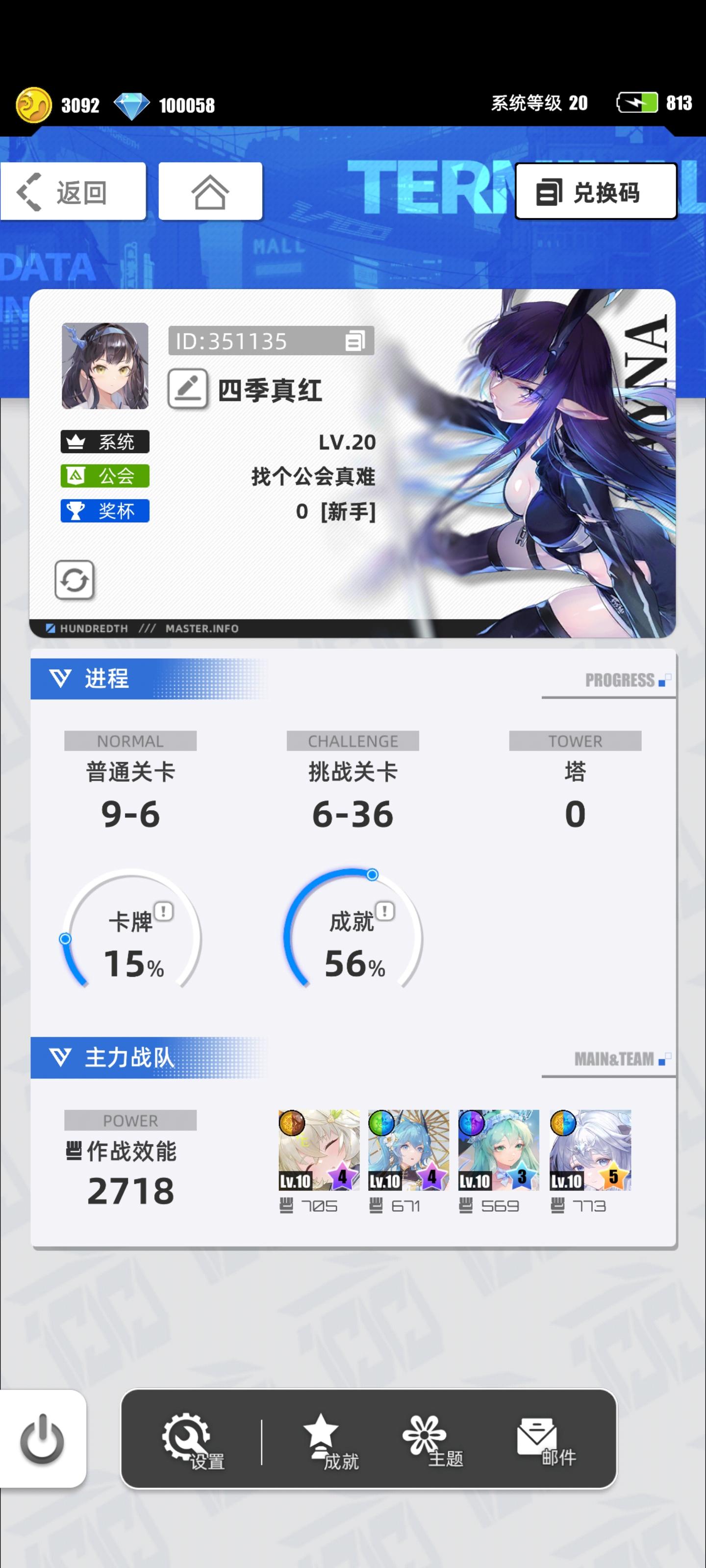 游戏名称:百分之一 游戏平台:TapTap 游戏时间:空闲时间 推荐人群:休闲游戏玩家,消消乐爱好者 游戏体验:刚刚入坑百分之一,目前体验下来是一款非常优秀的游戏,非常期待之后的周年庆。许愿游戏六星卡牌:代号P*冷落雪 游戏名称: 天凉好个秋 帐号ID: 1016570