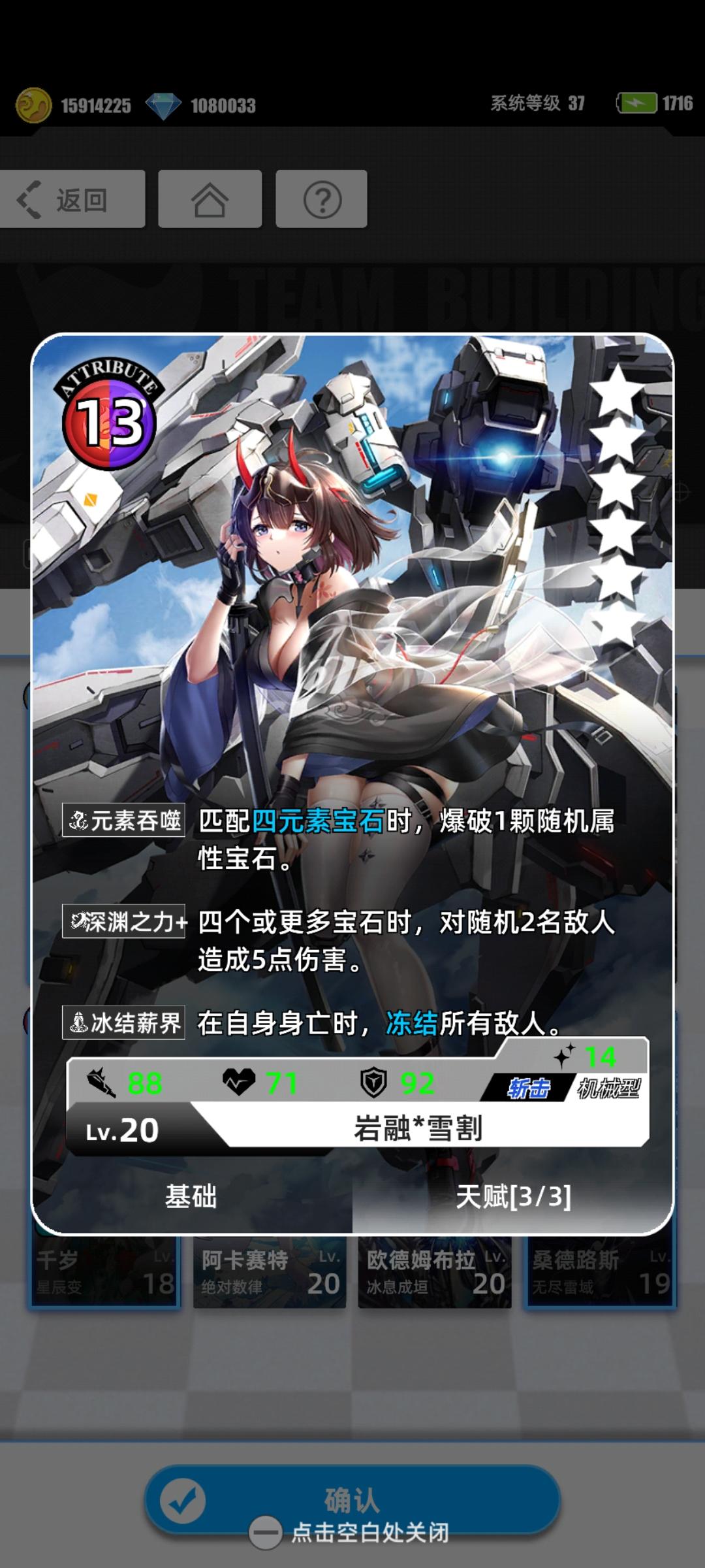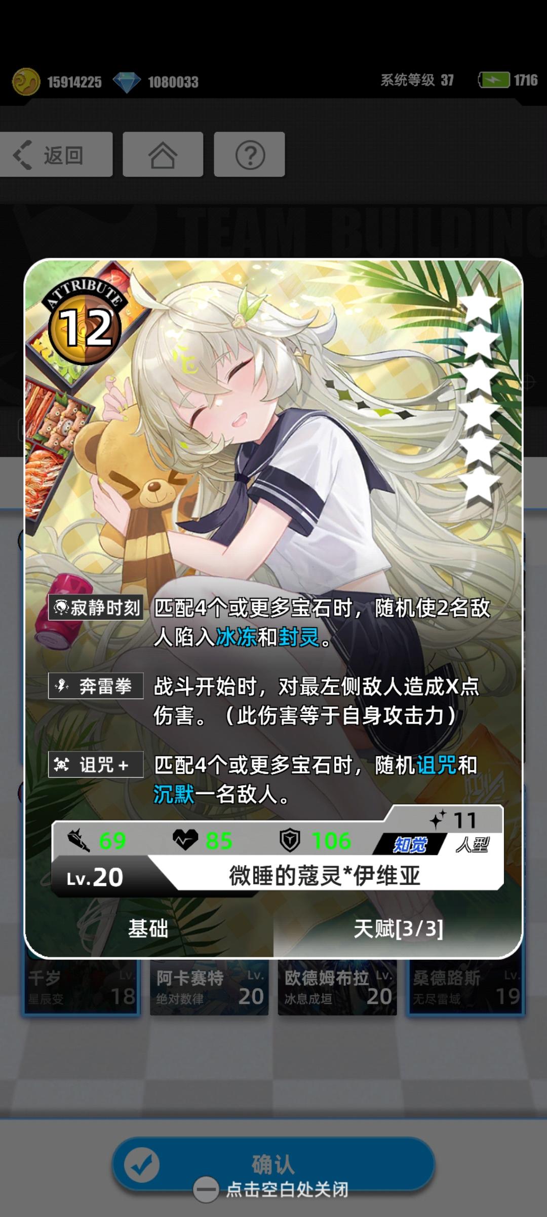 游戏名称:百分之一 游戏平台:TapTap 游戏时长:基本每天都会玩一会儿 适合人群:喜欢休闲、消消乐玩法的玩家 游戏体验:操作简单易懂,倍速功能很贴心,养成部分不复杂,最好评的是能够体验到几乎全部卡牌! 许愿六星卡牌:代号P·冷落雪 游戏名称:艾德琳帐号ID:865246