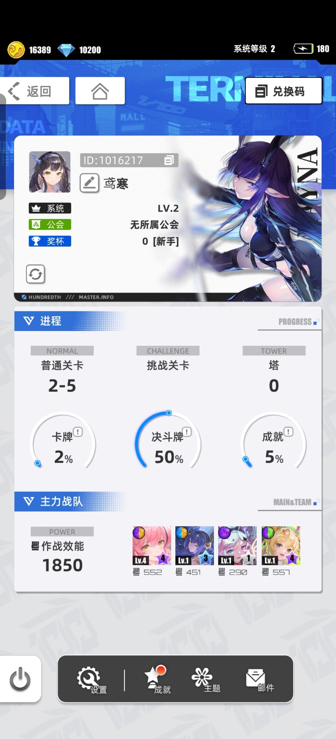 游戏名称:百分之一 游戏平台:TapTap 游戏时长:基本每天都会玩一会儿 适合人群:喜欢休闲、消消乐玩法的玩家 游戏体验:操作简单易懂,倍速功能很贴心,养成部分不复杂,最好评的是能够体验到几乎全部卡牌! 许愿六星卡牌:代号P·冷落雪 游戏名称:鸢寒 帐号ID:1016217