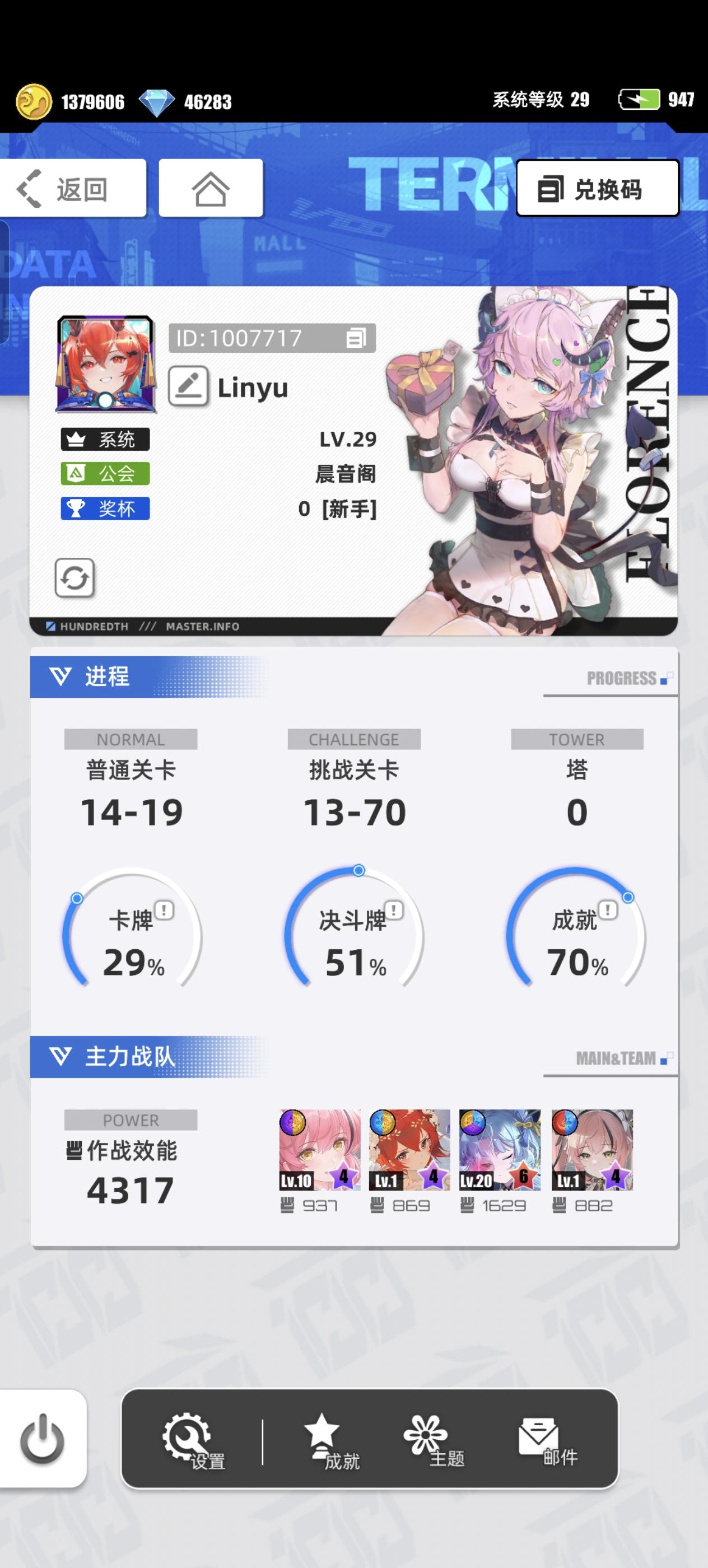 游戏名称:百分之一 发售平台:TapTap 游戏时间:累计时长2天左右 推荐人群:上班族、休闲党,消消乐兼二次元精品卡牌立绘收集题材爱好者 游戏体验:目前阶段玩着有点懵,迅速的参考了论坛帖子帮助,初心想白嫖兑换码,也是考了一波古,发现都过期了,原来是上古时代的产物,不肝,整体上休闲摸鱼体验挺好许愿六星卡牌:冷落雪 游戏名称:迟早账号ID:1045132#我的百分之一