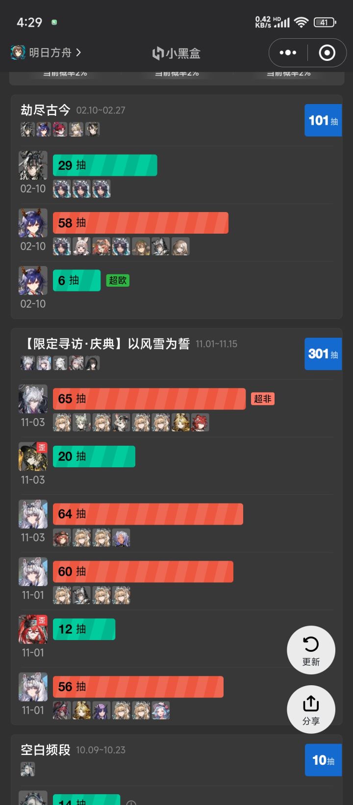 什么是【我的百分之一】见帖子说明:* * * https://www.taptap.cn/moment/371075389700702390(这个需要加,省得新玩家不知道是啥情况) 标题:【我的百分之一】+【明日方舟】 游戏名称:明日方舟 游戏当时发售平台:朋友推荐的 玩游戏的时间:2021.3.10 推荐人群:二次元 休闲党 正文:这次抽卡爆率还行,比上次好多了,准备抽个两百抽,换一