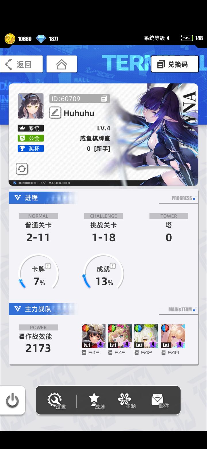 游戏名称:百分之一 游戏平台:TapTap 游戏时长:刚下载的萌新游戏体验 :游戏玩法比较新颖,人物立绘好看。Ui比较清爽,没有礼包弹窗,操作简单方便快捷。许愿卡牌:代号P*冷落雪 游戏名称:Huhuhu 帐号ID:60709ios tap服