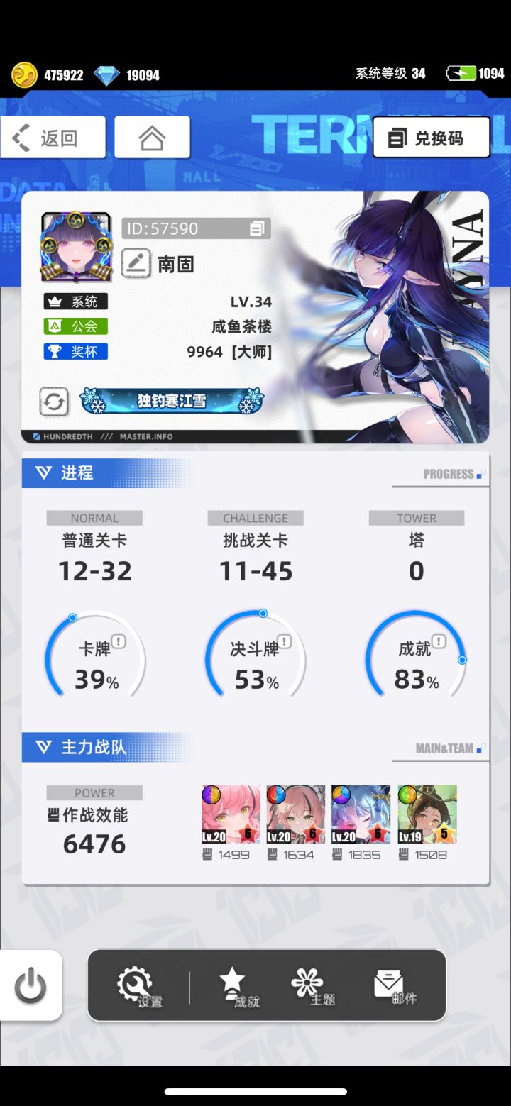 游戏名称:百分之一 游戏平台:TapTap 游戏时长:大体两周 适合人群:喜欢摸鱼的零氪党 游戏体验: 一开始无聊的时候(其他游戏肝完了)上taptap找游戏,首页推荐就是百分之一,抱着试一试的心态来玩,就发现自己陷在里面了 许愿六星卡牌:代号P·冷落雪 安卓官服 游戏名称:希塞卡 帐号ID: 1041508