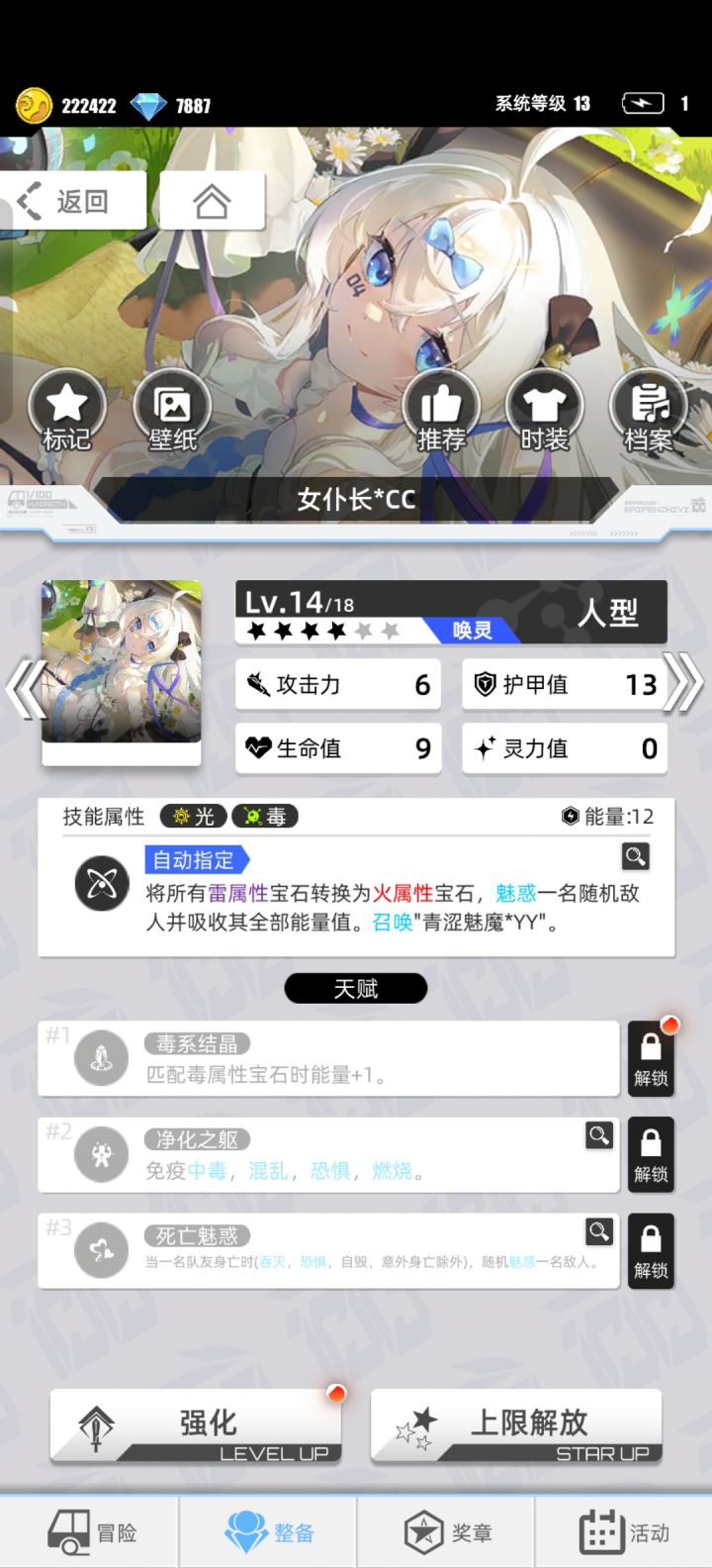 游戏名称:百分之一 游戏平台:TapTap游戏时长:刚入两天的萌新玩家 适合人群:休闲党 游戏体验: 闲来无事在TapTap找游戏发现的一款游戏,被评论区玩家所吸引抱着试一试的态度下载了百分之一。总体来说游戏给我的感觉还不错,三消玩法很休闲适合在零碎的时间拿出来玩玩,游戏目前给我的感觉不是很肝,非常适合我。 许愿六星卡牌:代号P·冷落雪 下载渠道:TapTap下载 游戏名称:秀郎 帐