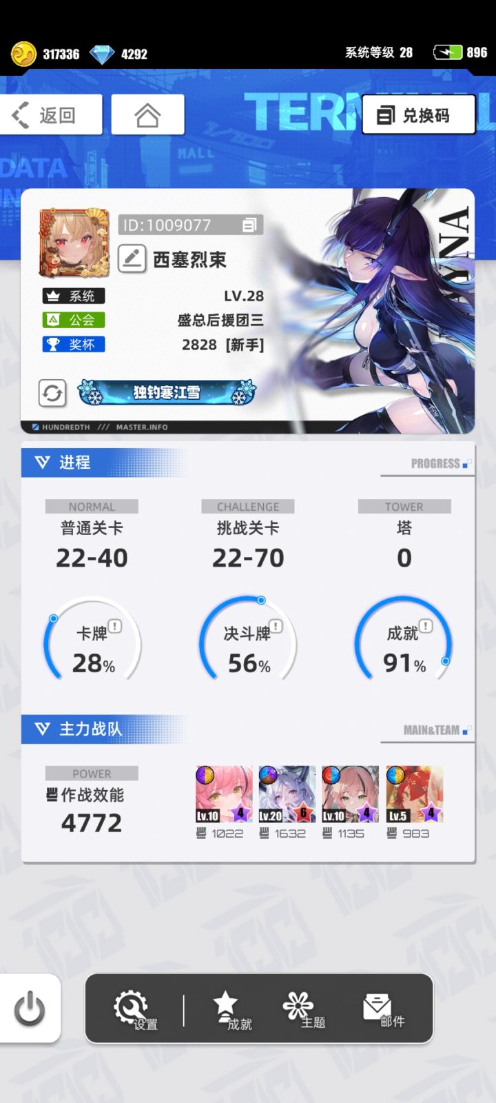 游戏名称:百分之一 游戏平台:TapTap 游戏时长:刚下载的萌新 游戏体验 :游戏玩法比较新颖,人物立绘好看。Ui比较清爽,没有礼包弹窗,操作简单方便快捷。 许愿卡牌:代号P*冷落雪 游戏名称:游一帐号ID:1053384安卓 tap服