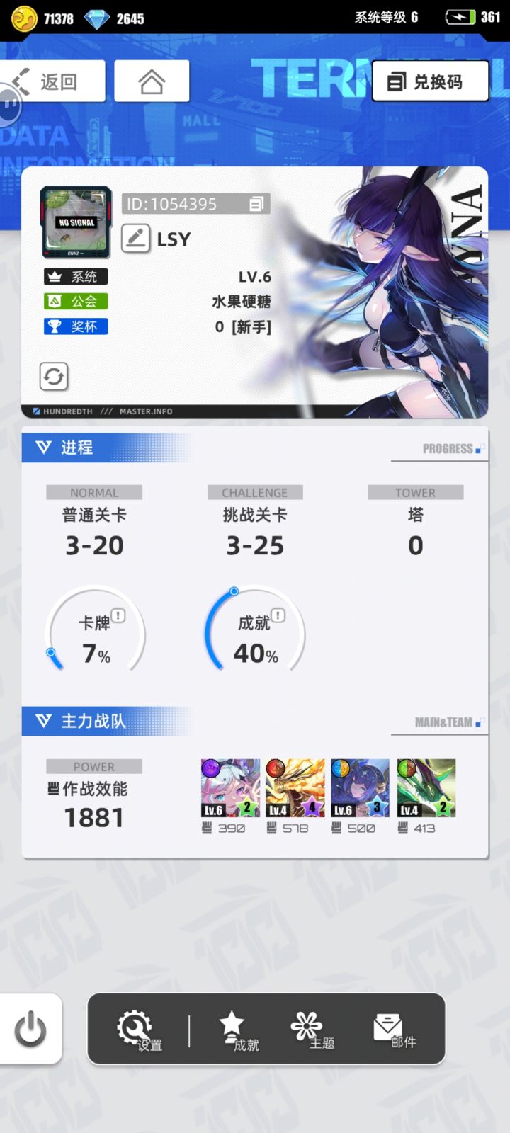 游戏名称:百分之一 游戏平台:安卓 游戏时长:萌新玩家 适合人群:零氪党 休闲党 游戏体验: 无意之中发现了这个宝藏游戏,画风和题材也很对我的胃口,对于我们这种牛马上班族来说,用零碎的时间来玩这个游戏真的太巴适了,希望可以一直玩下去。 许愿六星卡牌:代号p 冷落雪 Tap下载 游戏名称:LSY帐号ID: 1054395