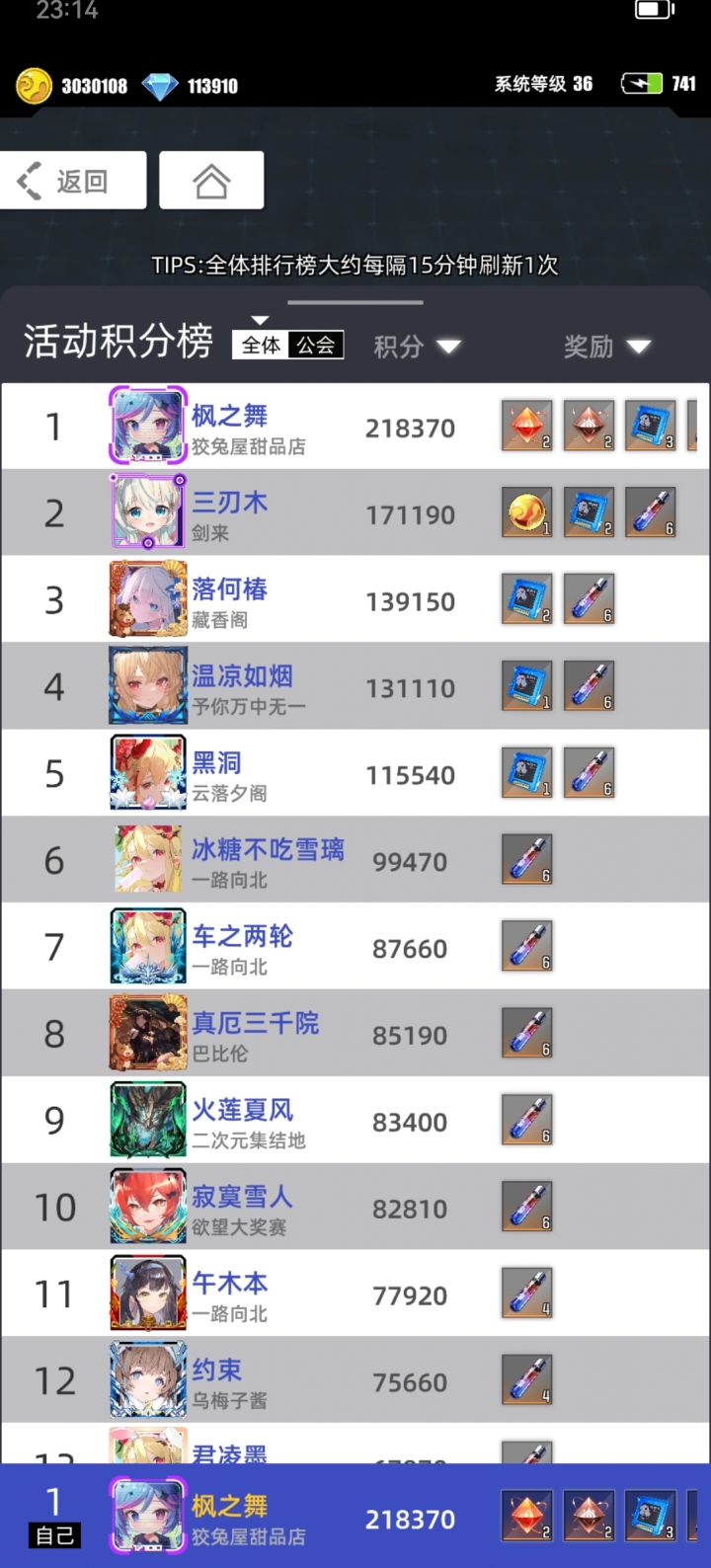 游戏名称:百分之一 游戏平台:TapTap 游戏时间:十多个小时,还属于萌新玩家适合人群:休闲玩家游戏体验:最近突然闲下来不知道玩什么好,想起来以前玩过百分之一,但是不记得先前那个号了,就重新开了一个号,现在慢慢打,感觉很有趣。目前的队伍是星见亚砂+伊维亚+塔维菈+诺伦,主打一个额外回合。许愿六星卡牌:代号p*冷落雪 安卓官服TapTap 游戏名称:叶落账号ID:1054639