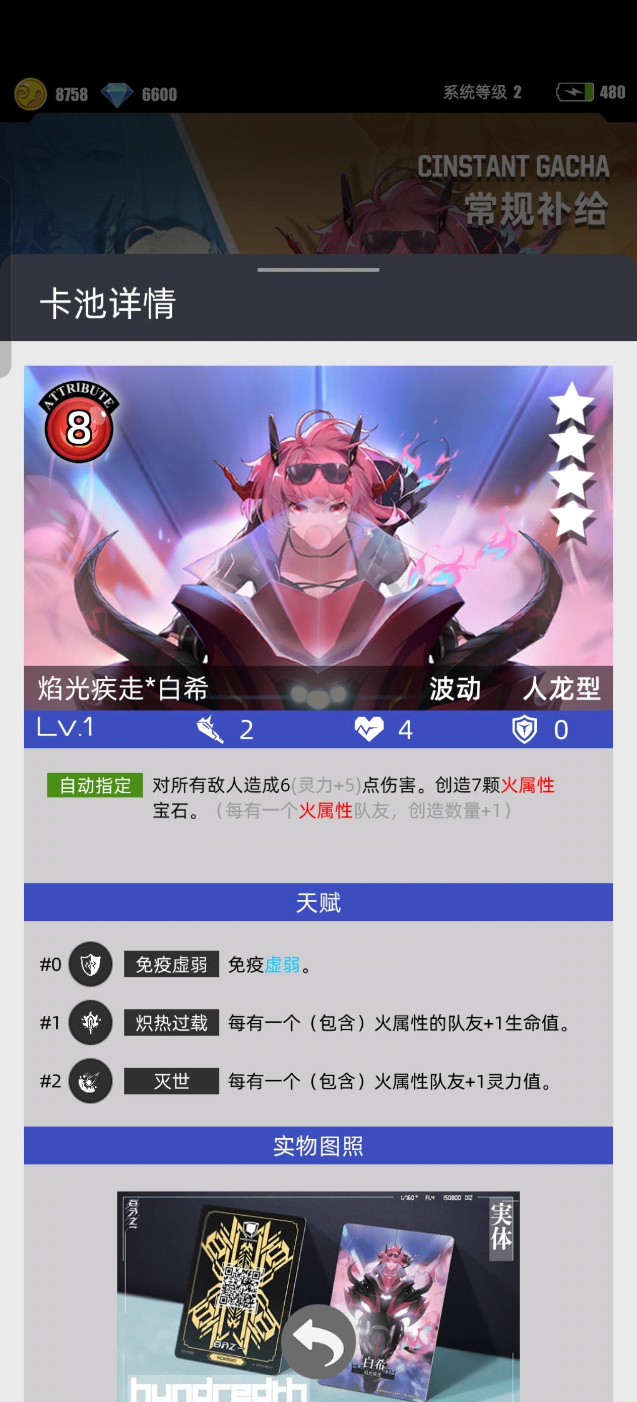 为了配合该活动,每周新卡更新描述时会隐藏对应属性。每周一下午更新时公开)猜猜我属啥(玩家取名“百分之一双色球”)活动说明1.每周会在本帖固定发一张下周(或下下周)会公布的新卡图2.玩家可在回复中猜测其属性(没有说明则固定是两种)3.下周五会揭晓中奖答案,会从猜中的朋友中抽取一名玩家获得本周实物奖品*14.猜中了但没有抽中的玩家,可在下次邮寄时找客服QQ2086492325(随时可以,不一