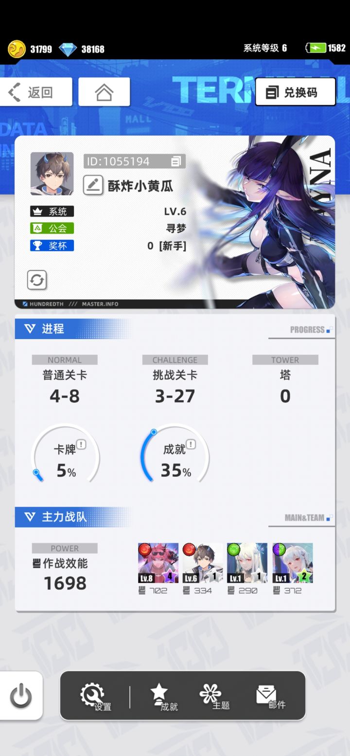 游戏名称:百分之一 游戏平台:TapTap 玩游戏的时间: 在大学期间 适合人群:休闲党。 游戏体验: 游戏体验相当轻松,大部分是以消消乐的形式来进行战斗,大部分关卡可以用自动来进行推图,运用了回合制的战斗方式,并且资源是很丰厚的,没有抽卡焦虑,我比较喜欢的是手机桌面的设计 ,简洁明亮 许愿六星卡牌:代号p 冷落雪 安卓官服TapTap 游戏ID:薇尔莉特帐号ID: 1054920