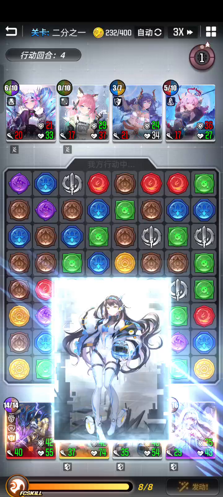 向阳白钰的技能是:摧毁8颗指定属性宝石,对每一个包含其属性的敌人造成灵力+5点伤害。 实测是摧毁点选的那颗宝石外加场上随机7颗紫色宝石。己方摧毁后的充能是所选颜色1点,紫色7点,对敌伤害正常,目标也是包含所选宝石颜色的敌方,与紫色无关。 视频里点选的是右上角红色宝石。换队友、换站置,换地图测过多次,都是摧毁点选1颗加随机紫色7颗。