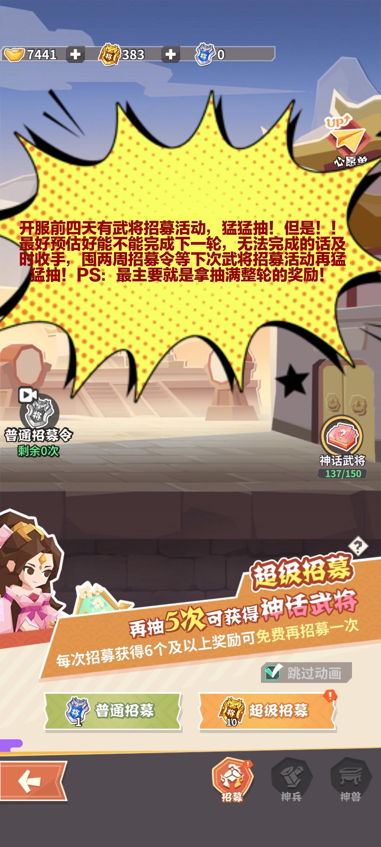 #勇敢幻想 #游戏攻略🥰🥰🥰刚进服的主公大大!这份老玩家踩过的血泪教训,帮你把资源用在刀刃上👇 PS:论坛以及有很多大大分享的新手流程➕阵容推荐之类了,就给大家整理了一下入坑到现在踩过了一些坑,希望能对您有所帮助✅ 一、招募活动猛冲但别上头 开服前四天的武将招募活动可以猛抽,但一定要算好次数!如果凑不齐一整轮就及时收手,把招募令囤两周等下次武将招募活动再梭哈