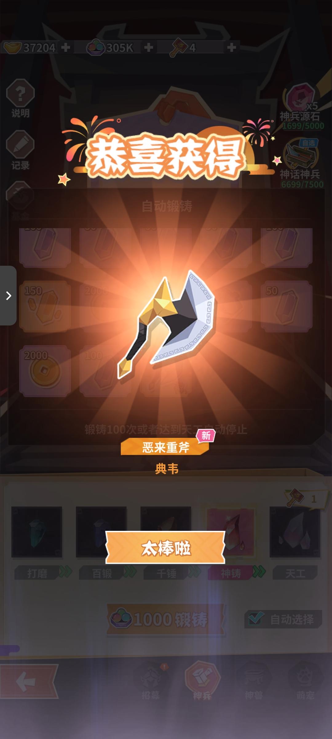 打造神器连出两个金,然后出了个神话孟获神器,可惜不玩孟获