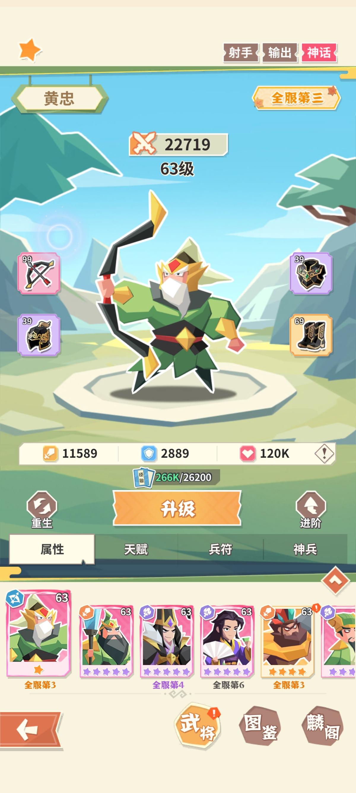 #勇敢幻想全民晒图 黄忠非常猛,暴击率非常高,可以越过前排直接秒杀后排,而且出货率非常高,人人养的起,值得平民全力培养。