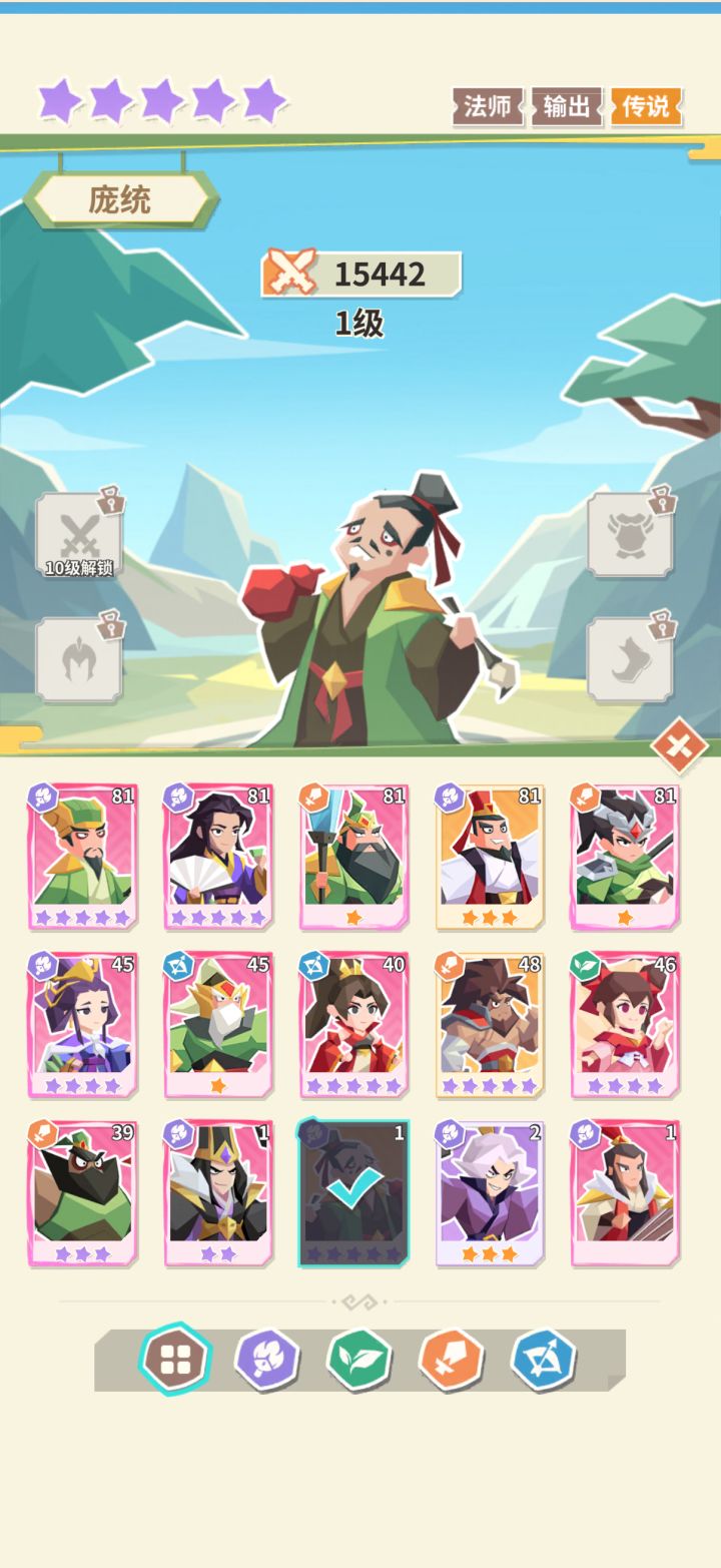 前期无脑主c鲁肃(金色武将,升星容易一两个月很容易满星21星,对神兵没什么要求,到16星前都输出最猛纯数值超模。如果没养,现在开始用金碎片随便升用下就知道厉害了!)同时培养的副c就周瑜或诸葛亮,这两个都要16星后且有神兵要求才能超过鲁肃,前期选一个副c,都超过鲁肃以后才只上这两个,周瑜全期发力均匀,诸葛亮发力特别后期,前期就上纯吃苦,完全体的主c是诸葛亮无疑其他角色最好三个肉就完事了,不要整什