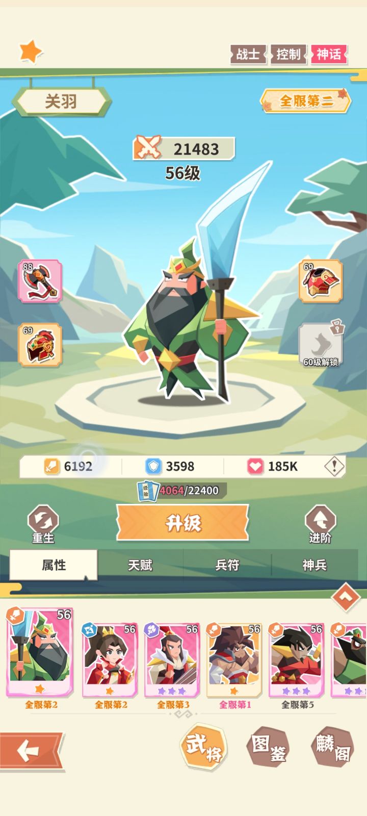 六星关羽六星孙尚香开局,推关打到9-21。