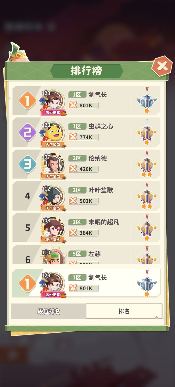 1区 剑气长ID2301100110337前言:这个游戏的可玩性还是非常多的,喜欢三国题材游戏的强烈推荐,作为一个氪佬因为第一次玩走了很多弯路所以分享一些避坑心得一. 阵容这个游戏最推荐的阵容就是战法,三战士两法师前期法师推荐周瑜诸葛和鲁肃(缺法师可以把鲁肃进阶为神话品质,前期推图爆发很高)建议堆一个极限战力诸葛或者周瑜那个星高倾斜资源重点培养,战士推荐张飞,关羽,黄盖,周泰(赵云没用别