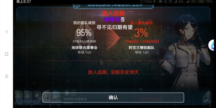 如果看得仔细,会发现强芯片的附加能力我也是有讲究的,导弹打驱逐舰+40攻击,我用的护盾刚好抵消这个弊端。另外防御脆弱的都加了加农炮闪避,趋于对导弹的害怕,大部分属性都是克制导弹的。我的6星人物导弹防御技能给全队加了30+导弹抗性,然后护盾抵消驱逐舰弱点,强芯片附加能力更是遏制了导弹的伤害。在防守上无懈可击,唯一遗憾的是,纯导弹阵容对母舰的杀伤力实在太低,(导弹对母舰伤害–40,对驱逐舰+40)。打到第9章最后一关怎么都打不死纯母舰阵容,后面研究了外星人武器死亡战舰,攻击力巨高,攻击超过我们本土科技的2倍,攻速降低,射程更是降低到20。我放弃了本来队伍中的一个导弹分析师,后来又放弃了一个导弹专家,最后选择了这个用最普通代币搜索的5星战舰瞄准师。没错,就是最垃圾的搜索代币搜到的,那个代币显示只能搜2-4星,我却搜到了5星的,当然这也是我用了无数垃圾代币中唯一搜到的5星