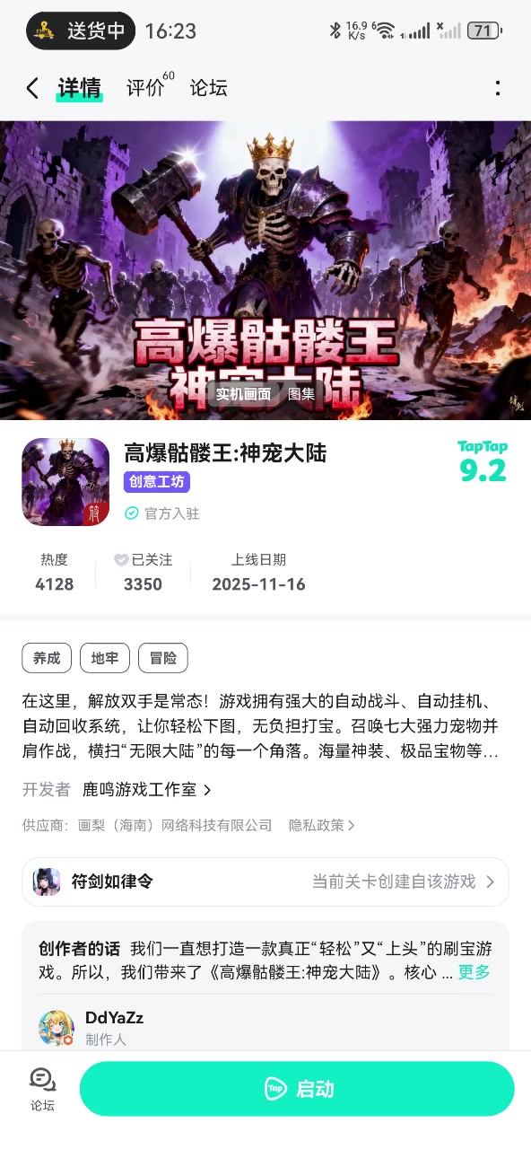 假如tap显示不支持当前设备的话可以先下载星火对战平台 手机版 https://www.taptap.cn/app/613799ios可以直接在appstore搜索 星火对战平台进入星火对战平台后 点击新游 找到本游戏点击启动即可! 帐号依然是tap账号登录!有电脑的也可以下载电脑端https://spark.taptap.cn/三端互通 数据互通 #高爆骷髅王神宠大陆