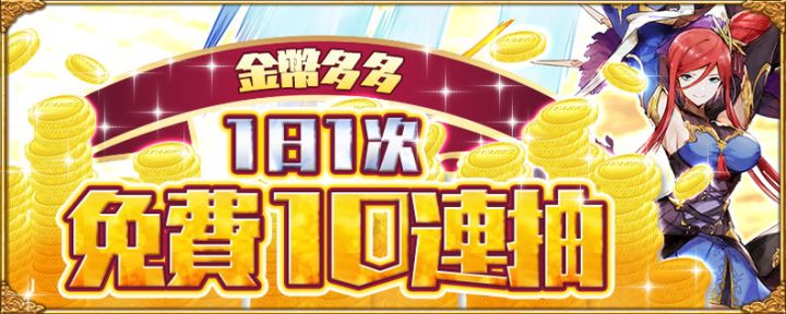 感谢大家一直以来对「阿瓦贝尔圣境」的支持和喜爱,我们已于5月22日13:00进行了在线更新。本次更新内容如下:【贩卖名称】金币多多 1天1次10连抽免费扭蛋【价格】10回转 0魔石【类别】道具扭蛋【贩卖时间】2019年5月22日 维护后~ 2019年5月29日 12:59 为止【注意事项】※1个账号每天仅限1次。 ※虽然系统会显示「将先使用免费的魔石。」,但本扭蛋不使用魔