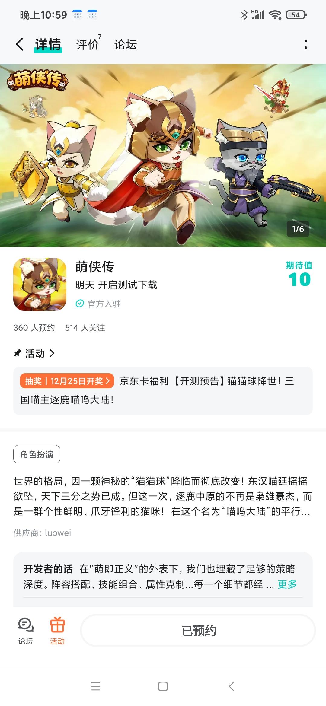喵呜大陆的大门将正式开启!准备好化身喵主,带领你的专属喵将抢占会移动的猫薄荷森林、挖掘神秘的小鱼干矿藏,在这场由猫猫球引发的毛茸茸三国争霸中,书写属于你的喵星传奇了吗?⏰开测时间:2025年12月17日 10:00🎁 开测专属福利:【京东卡抽奖活动】▶ 参与方式1.点击关注发帖账号并预约《萌侠传》且发新帖晒截图2.在本帖下方评论区分享发帖链接即可【奖品发放】到达开奖时间后,由tapt