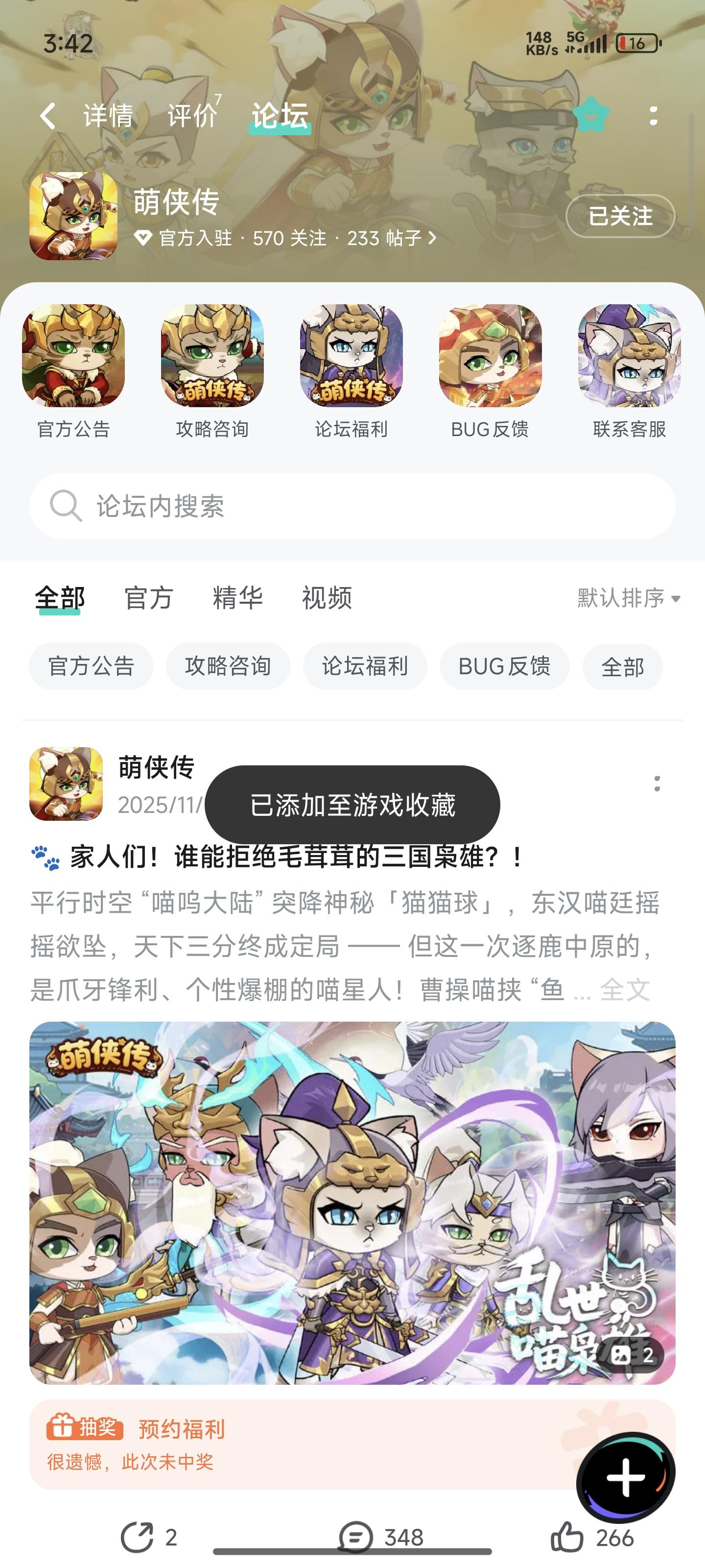 喵呜大陆的大门将正式开启!准备好化身喵主,带领你的专属喵将抢占会移动的猫薄荷森林、挖掘神秘的小鱼干矿藏,在这场由猫猫球引发的毛茸茸三国争霸中,书写属于你的喵星传奇了吗?⏰开测时间:2025年12月17日 10:00🎁 开测专属福利:【京东卡抽奖活动】▶ 参与方式1.点击关注发帖账号并预约《萌侠传》且发新帖晒截图2.在本帖下方评论区分享发帖链接即可【奖品发放】到达开奖时间后,由tapt