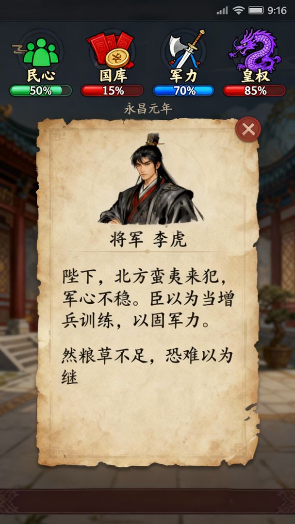 扮演皇帝,通过左右滑动处理无尽朝政。