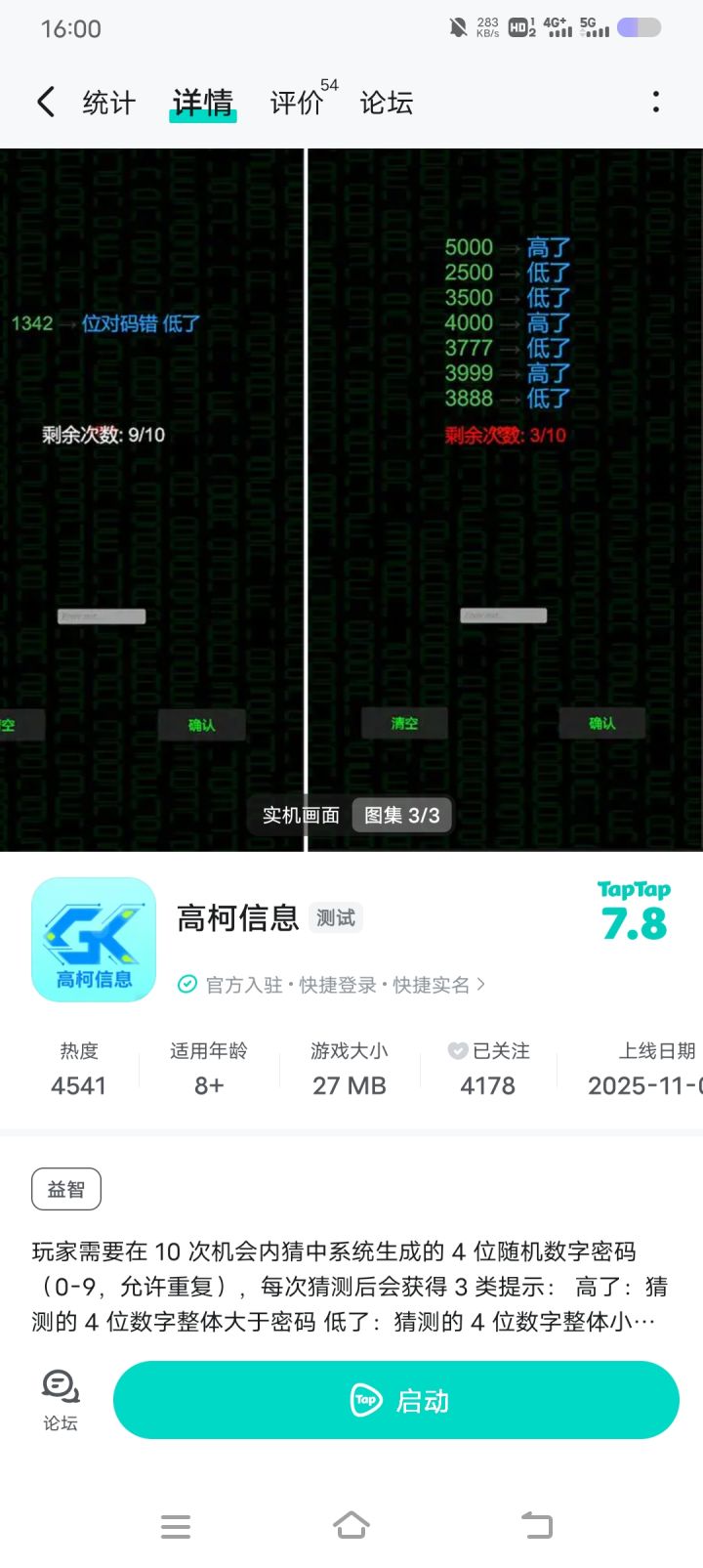 这游戏都不用动脑子,直接把零到九全部试一遍,例如第一次都按1,第二次都按2,以此类推,最多十次就可以把正确答案试出来了