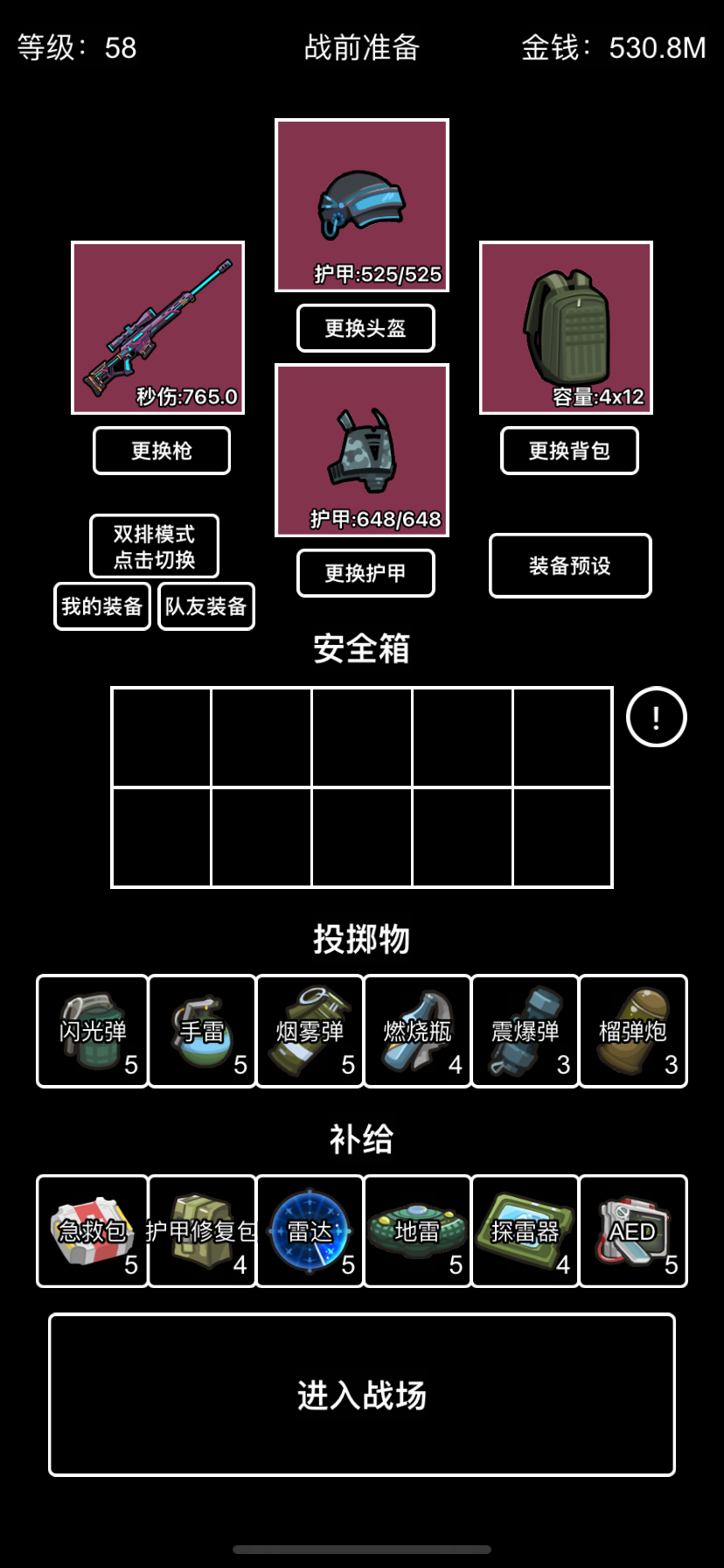 最后一张图双排速刷boss。不用带很多东西,路上打两三个人补充下投掷物就好。进去往中央控制室靠。队友穿衣抗自己不用穿衣服直接随便抢路人一套有耐久的(反正要换),队友抗你打。开着雷达走可以提前排雷。尽量打先手不是先手直接闪光弹。队友耐久加起来600以下就修。boss门口前一格放个雷防止其他队伍偷袭。打boss也是打先手,不是先手直接闪光弹逃跑,回头再打,先手的话丢个榴弹,然后进去有啥丢啥,榴弹、震爆